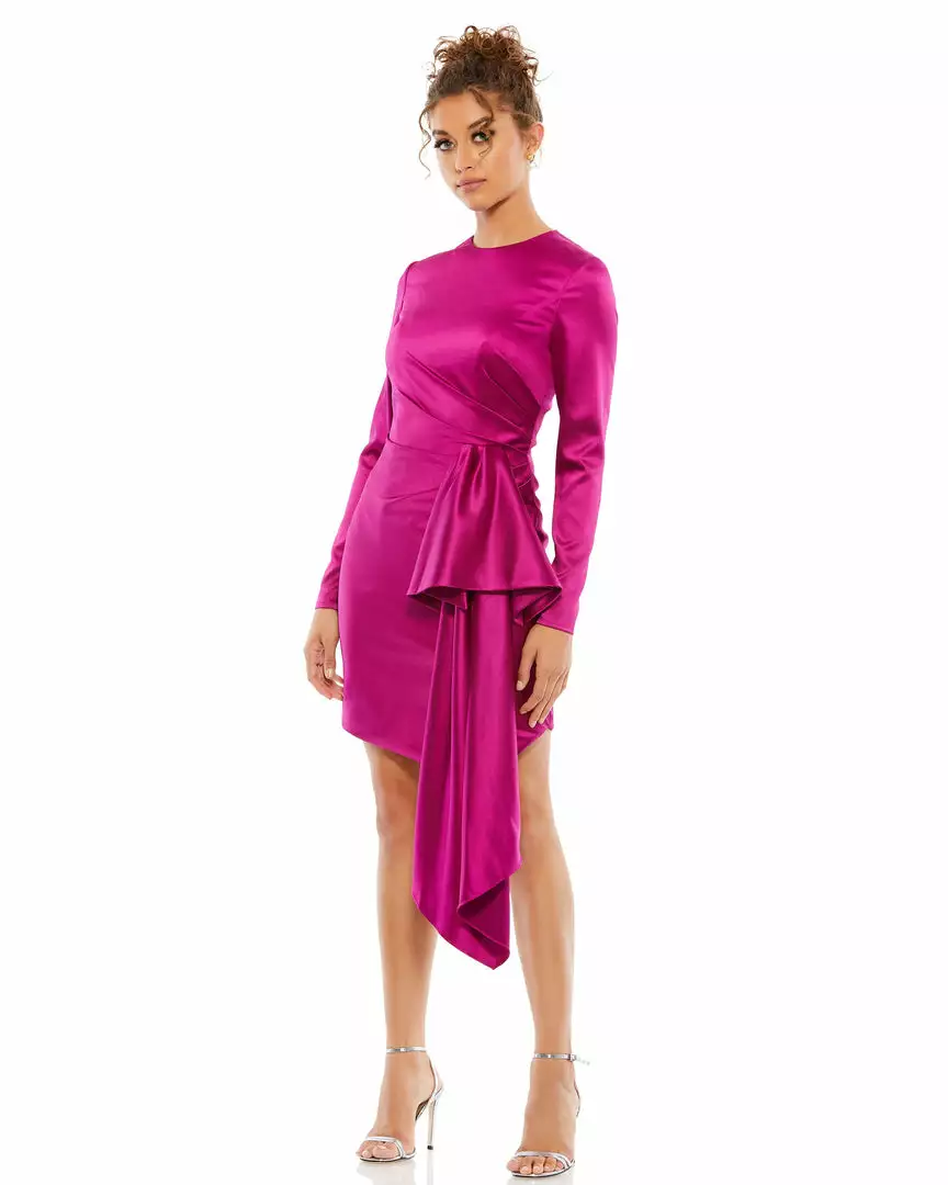 Ieena For Mac Duggal Asymmetrical Draped Long Sleeve Mini Dress