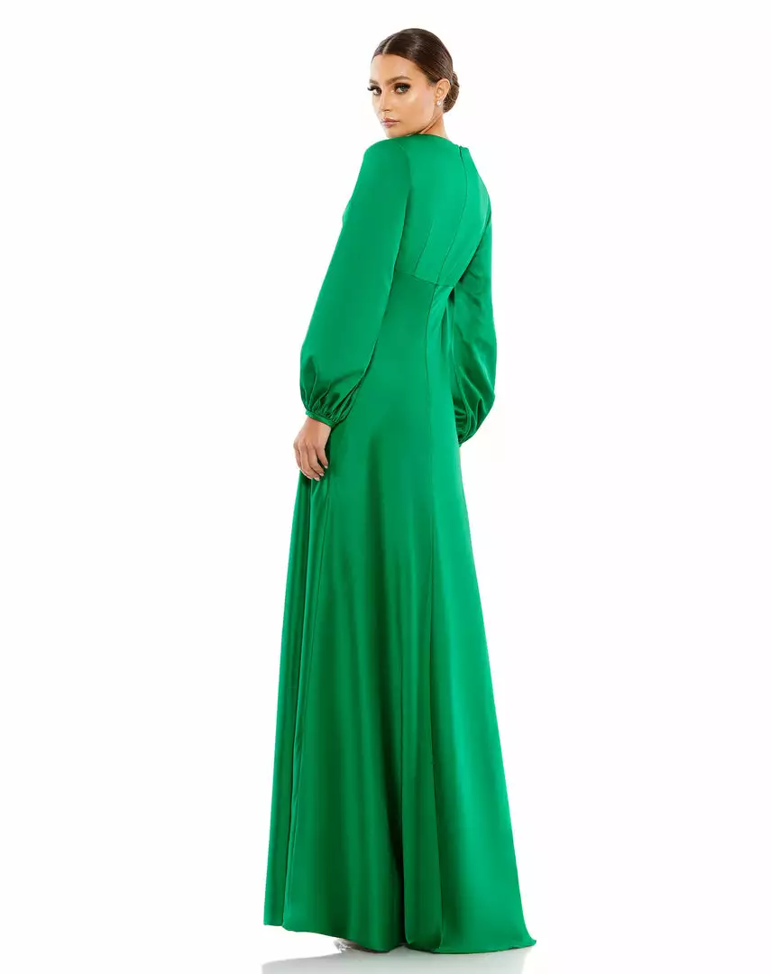 Ieena For Mac Duggal Charmeuse Empire Waist Blouson Sleeve Gown