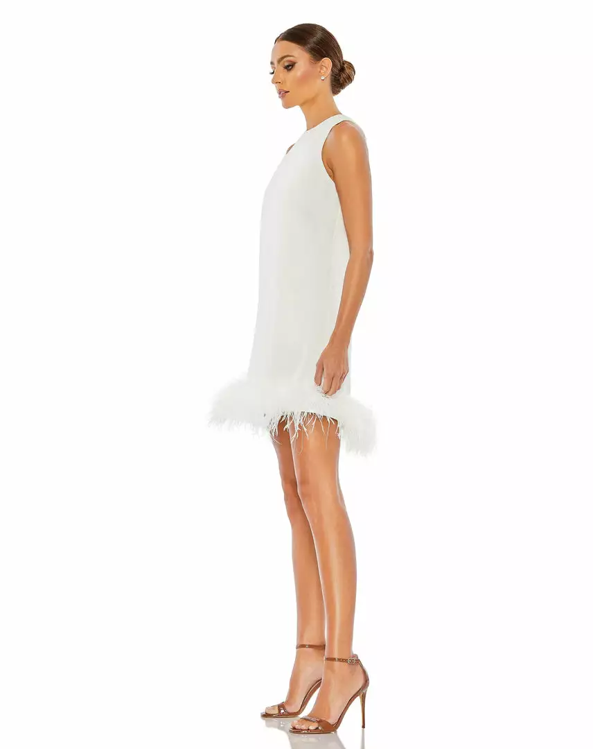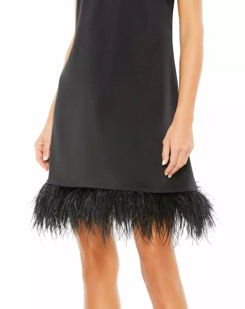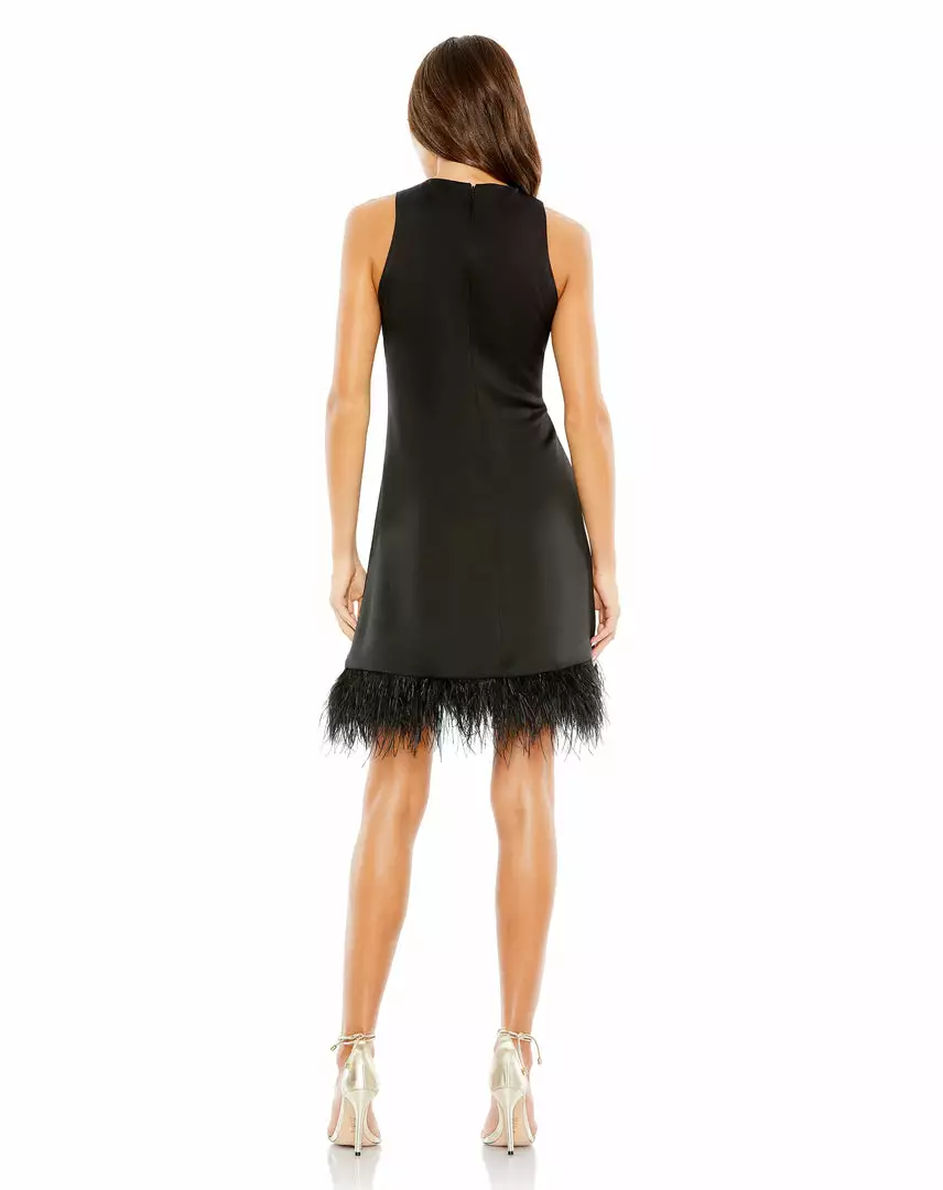 Ieena For Mac Duggal Feathered Hem High Neck Sleeveless A Line Dress Shop For