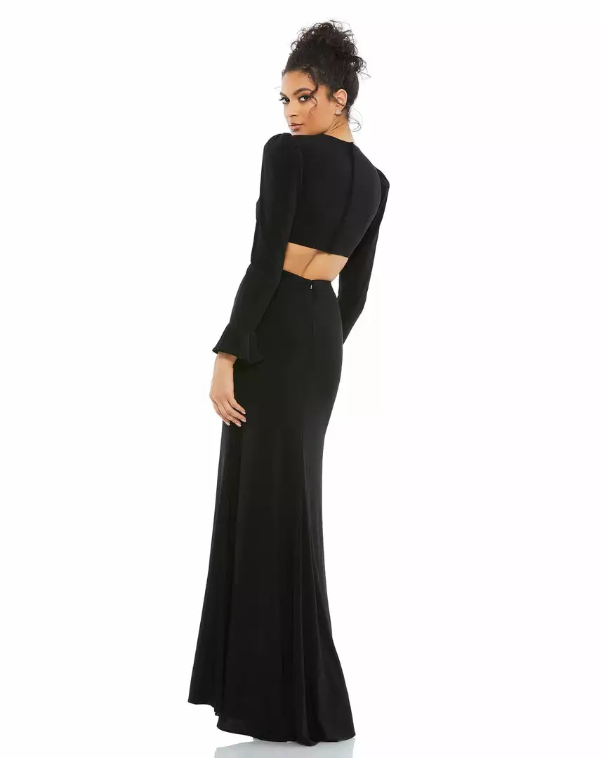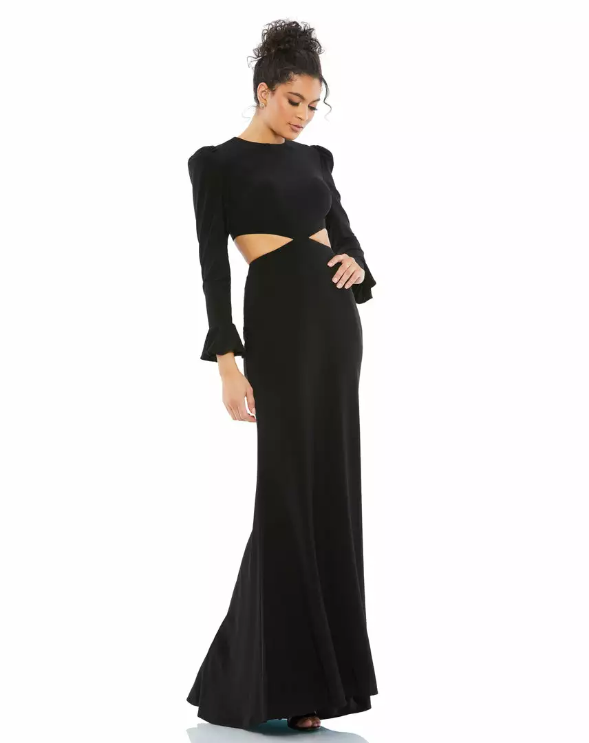 Ieena For Mac Duggal Long Sleeve Puff Shoulder Cut Out Gown