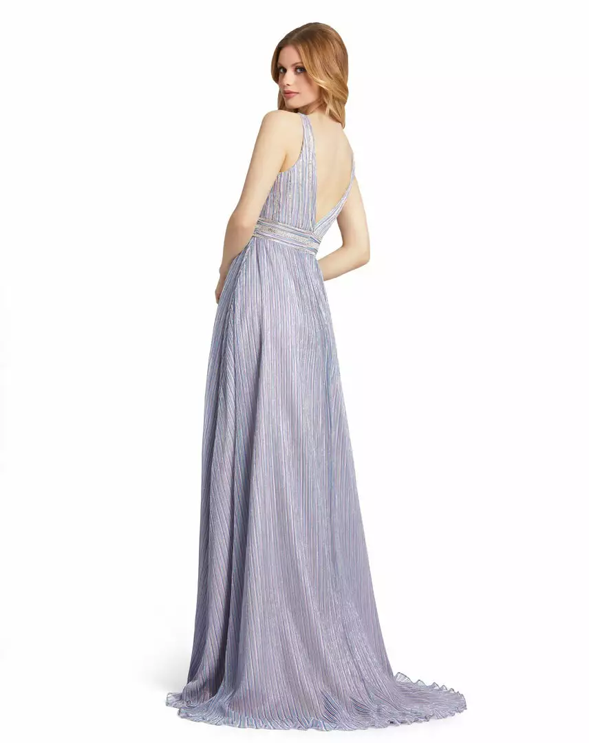 Ieena For Mac Duggal Metallic Infused V Neck Sleeveless Gown Shop For
