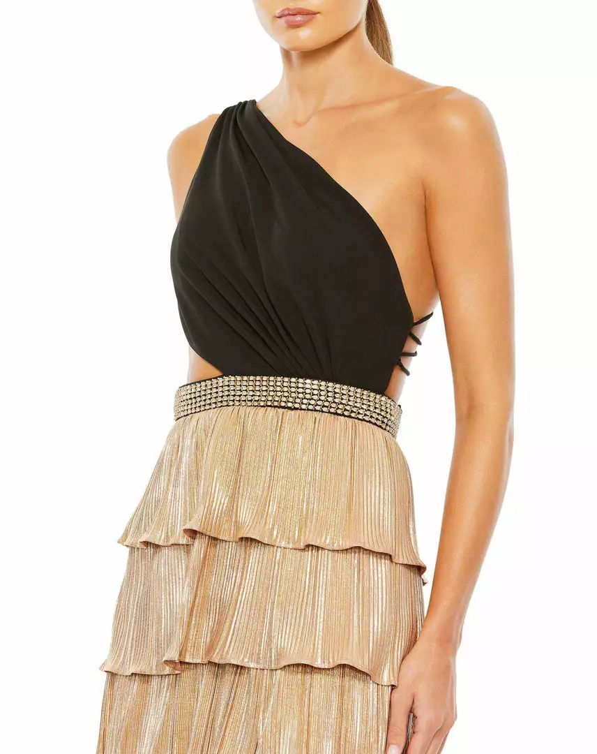 Ieena For Mac Duggal Metallic One Shoulder Ruffle Tiered Gown Shop For