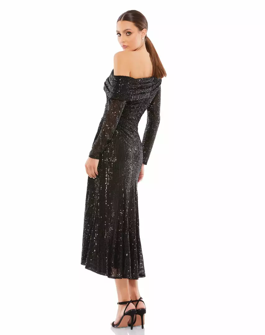 Mac Duggal Embellished Illusion Long Sleeve Midi Dress Shop For