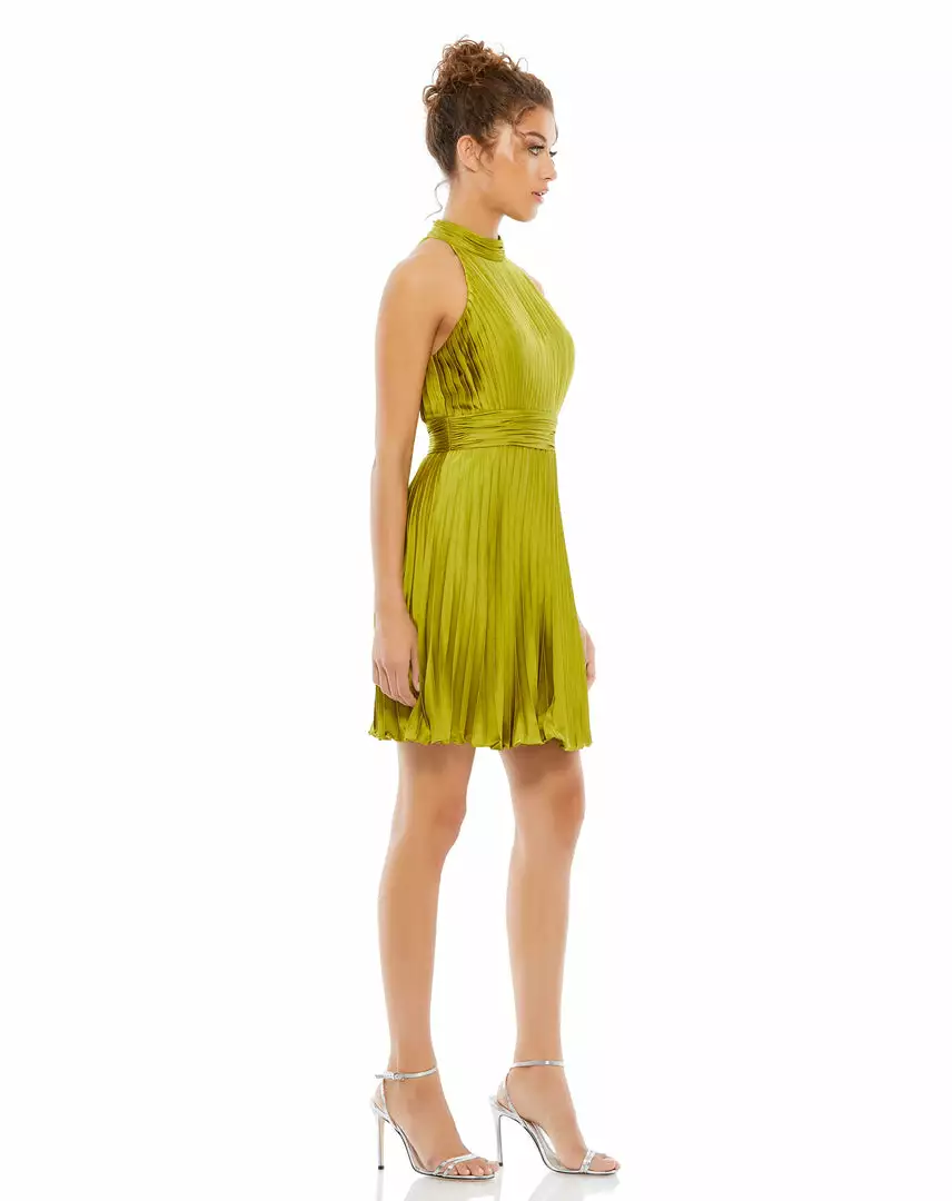 Ieena For Mac Duggal Pleated Halter Neck Mini Dress