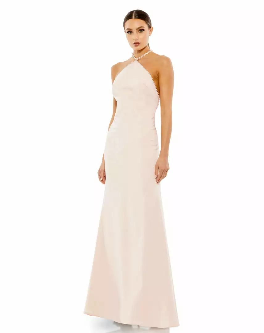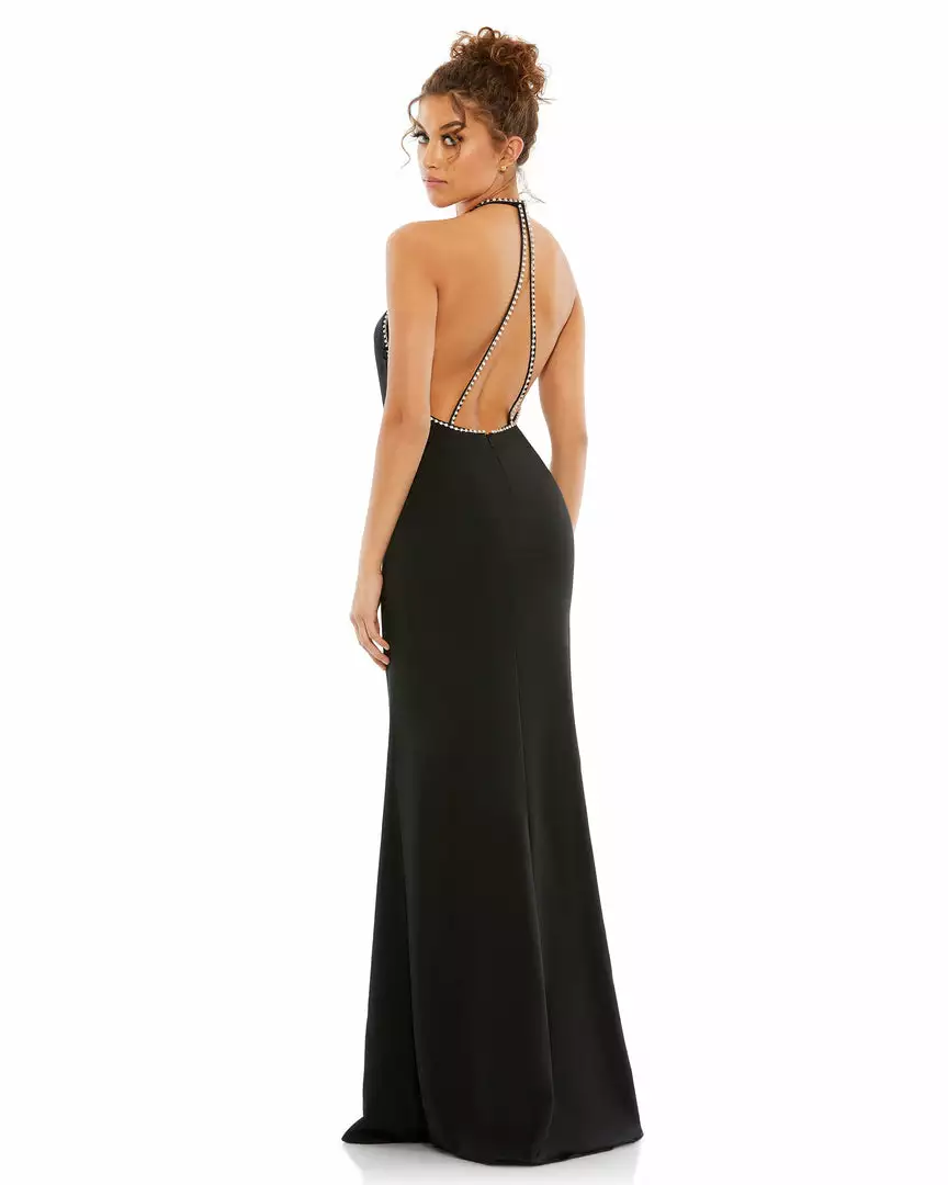 Ieena For Mac Duggal Rhinestone Halter Column Gown