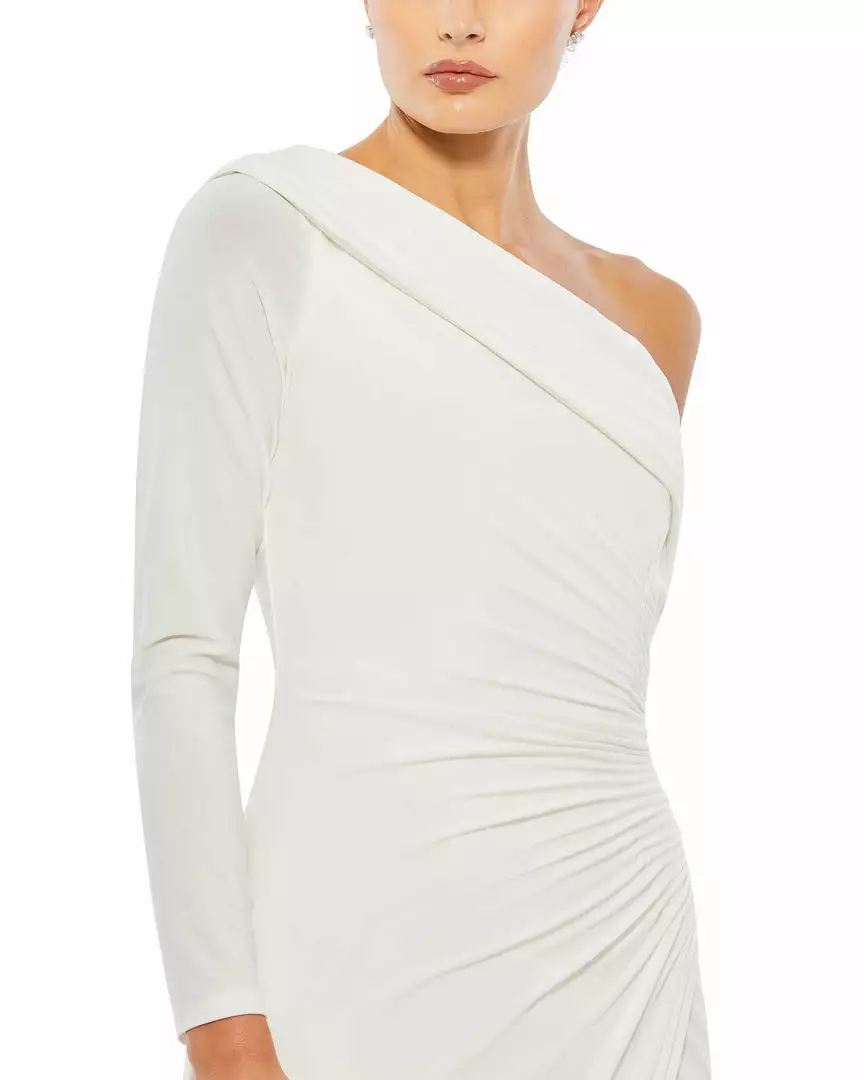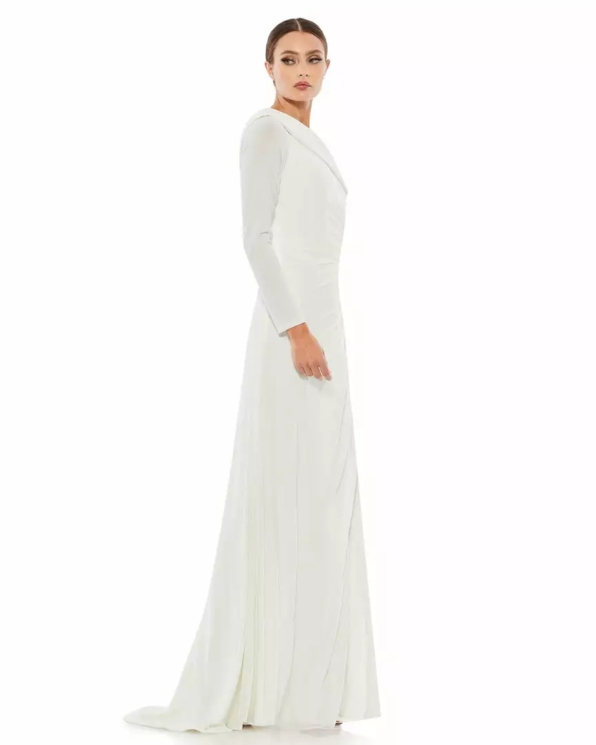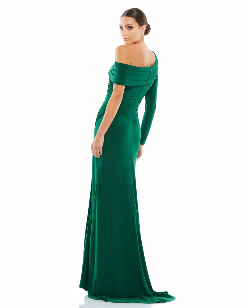 Ieena For Mac Duggal Ruched Jersey Drop Shoulder Foldover Gown