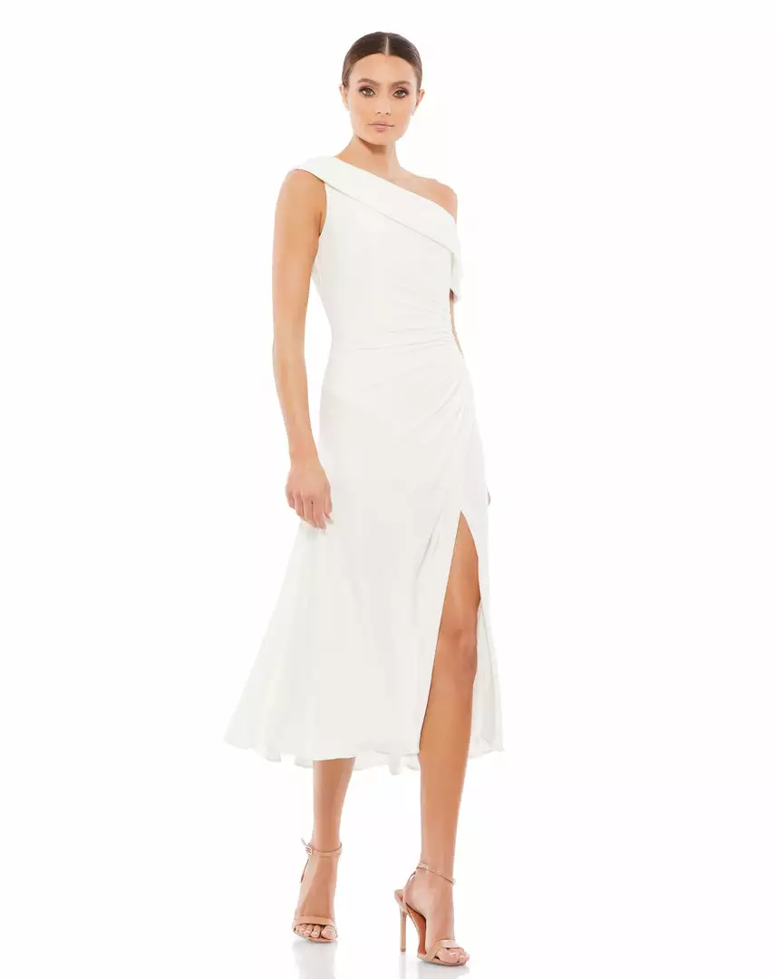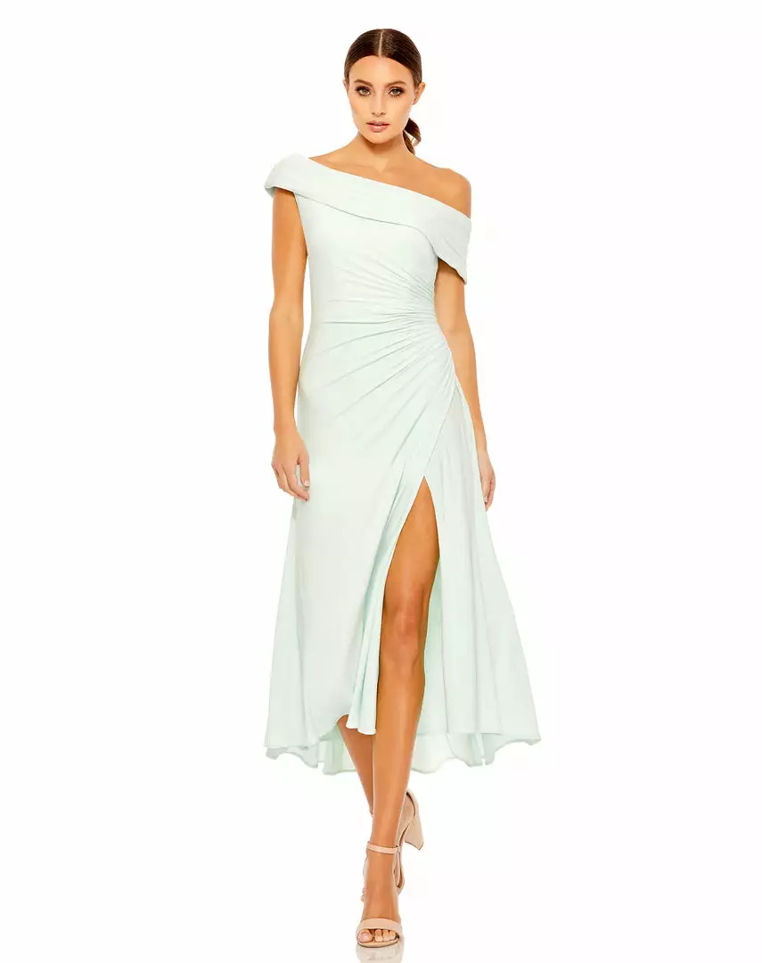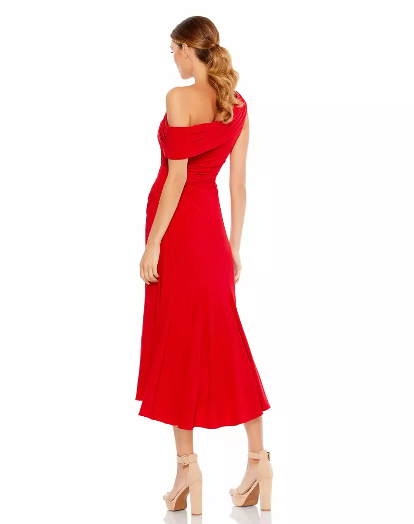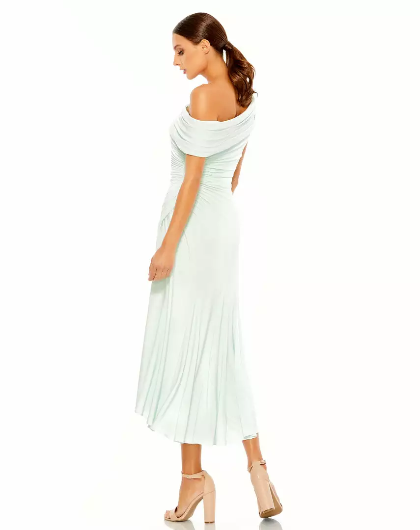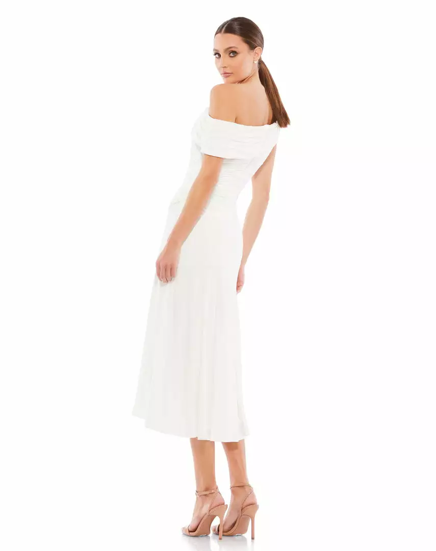 Ieena For Mac Duggal Ruched Off-The-Shoulder Midi Dress Shop For