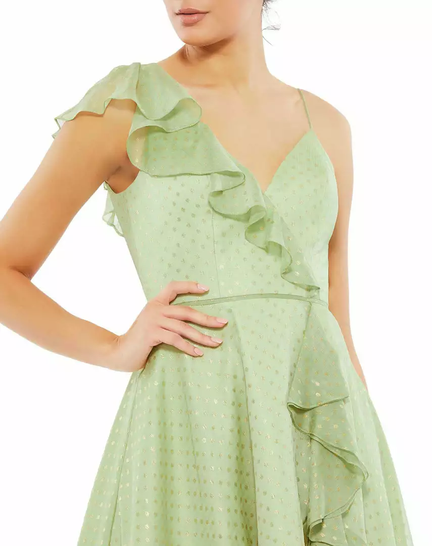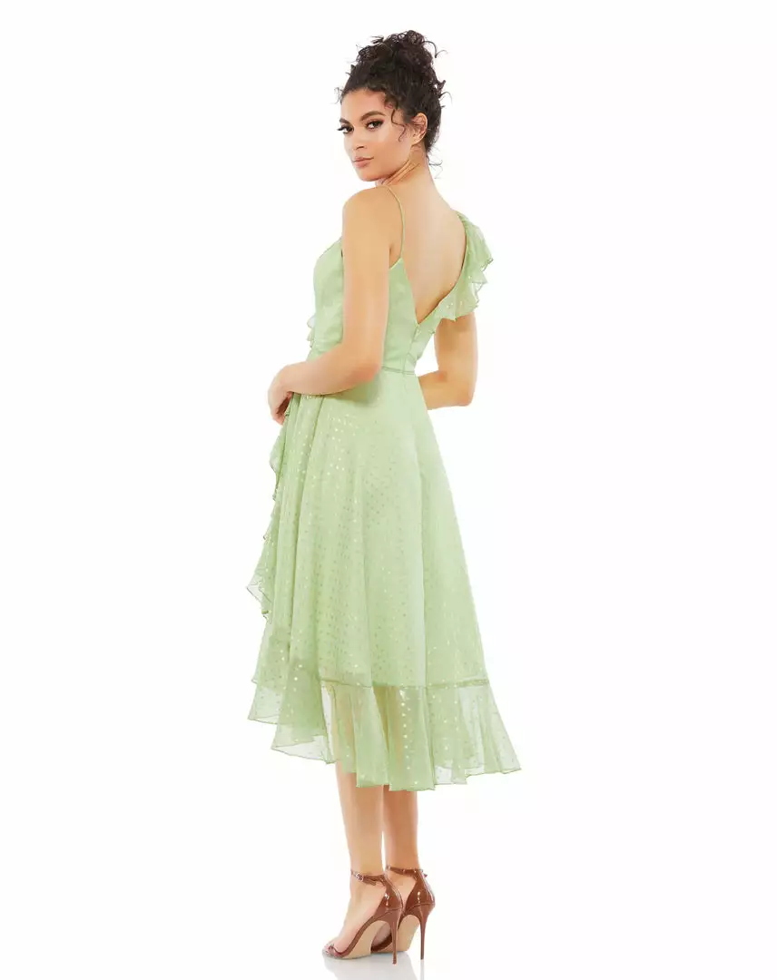 Ieena For Mac Duggal Ruffled Faux Wrap Midi Dress
