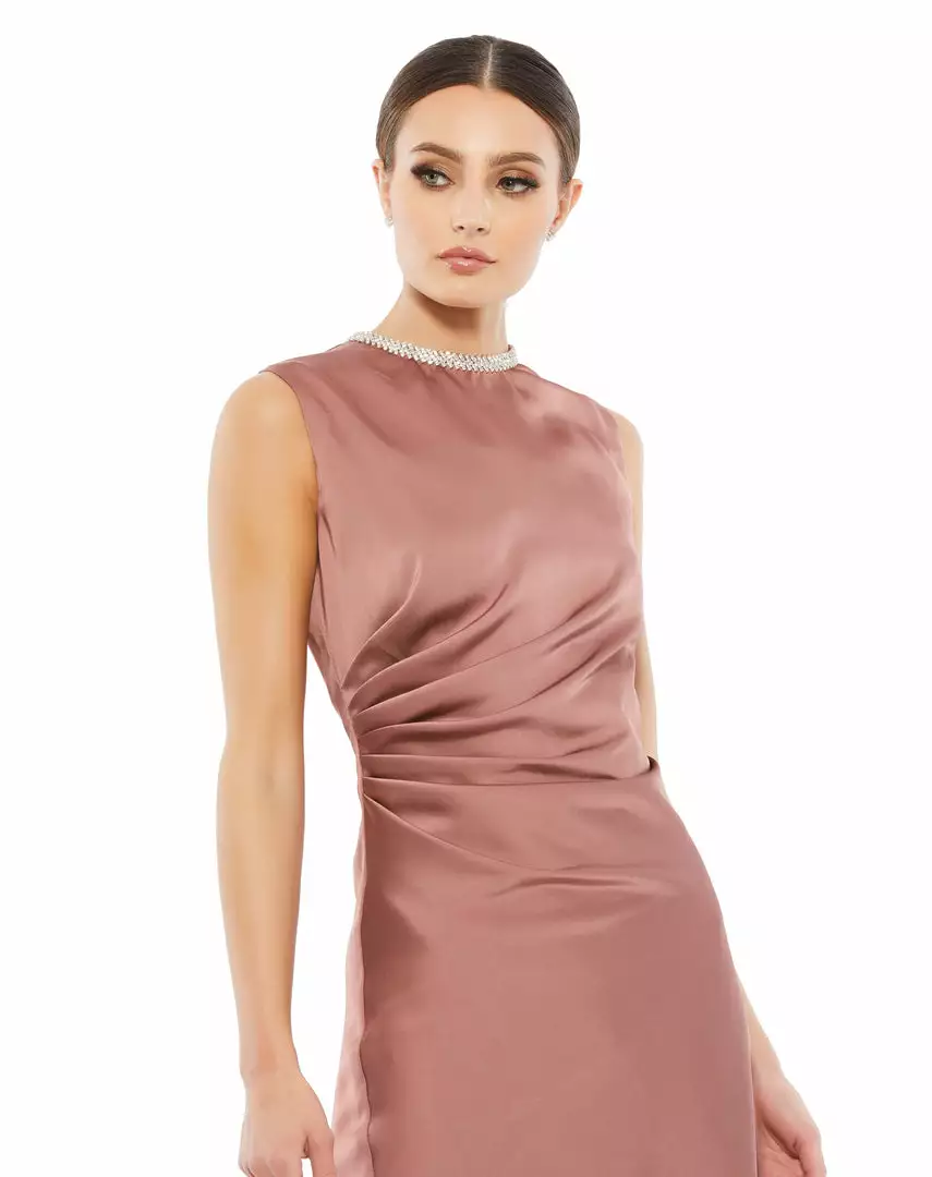 Ieena For Mac Duggal Satin Cocktail Dress W/ Rhinestone Accents Shop For
