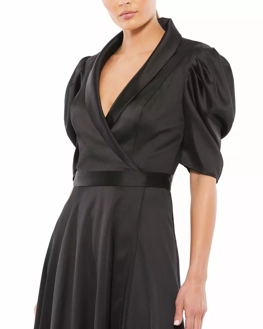Ieena For Mac Duggal Satin Lapel Puff Sleeve Tea Length Dress Shop For