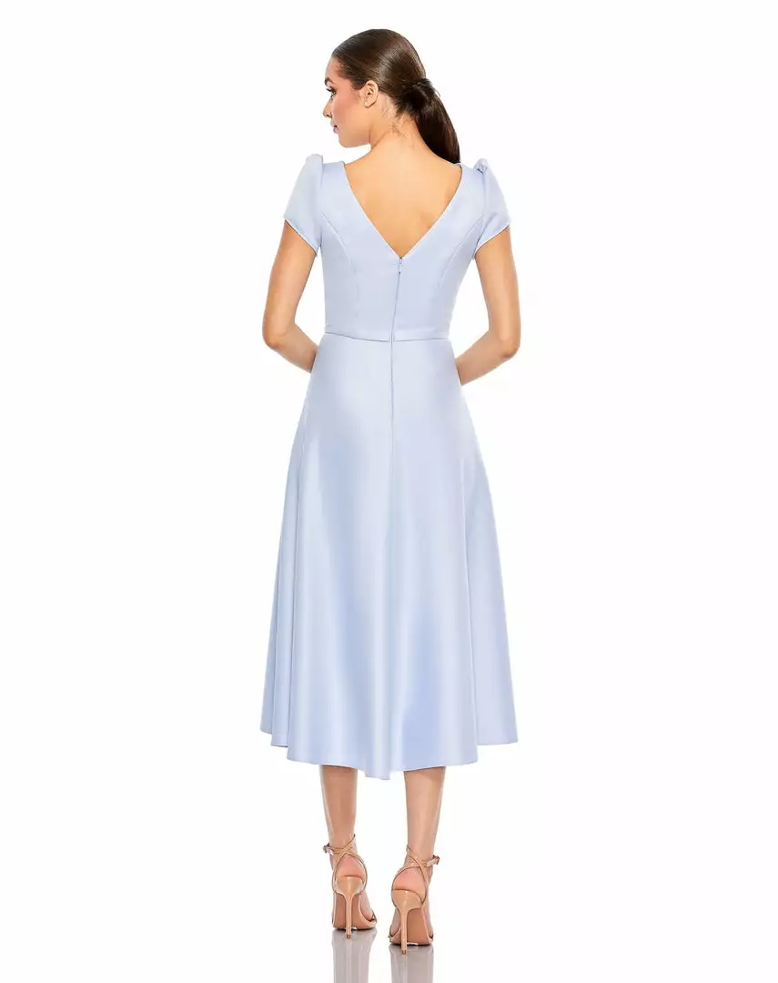 Ieena For Mac Duggal Satin Puff Shoulder Tea Length Dress