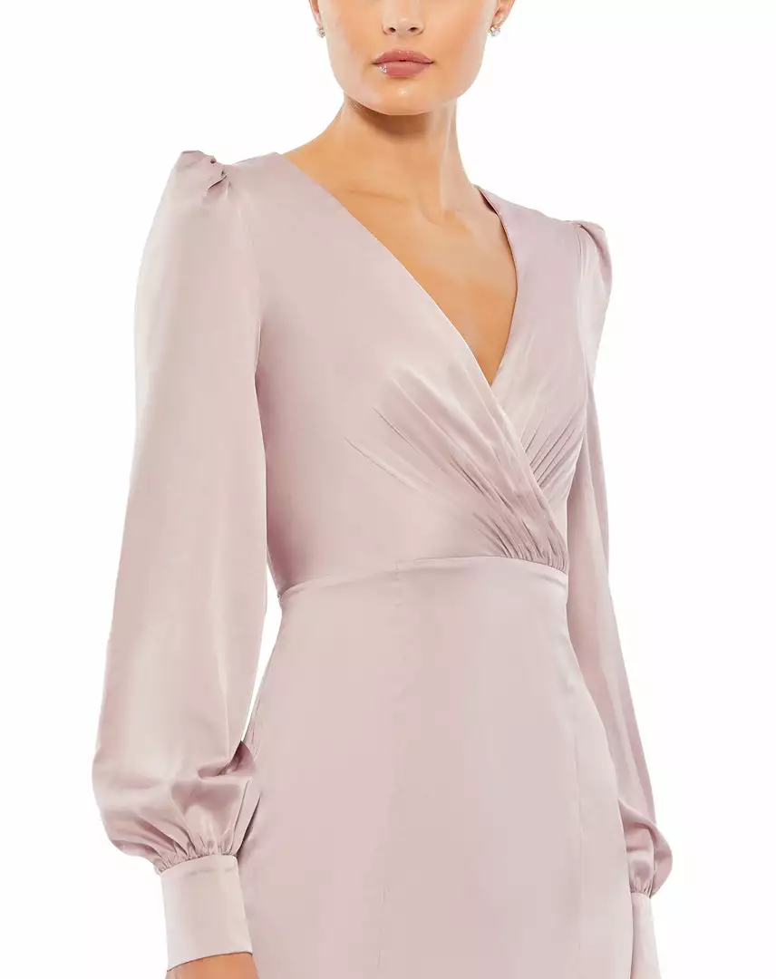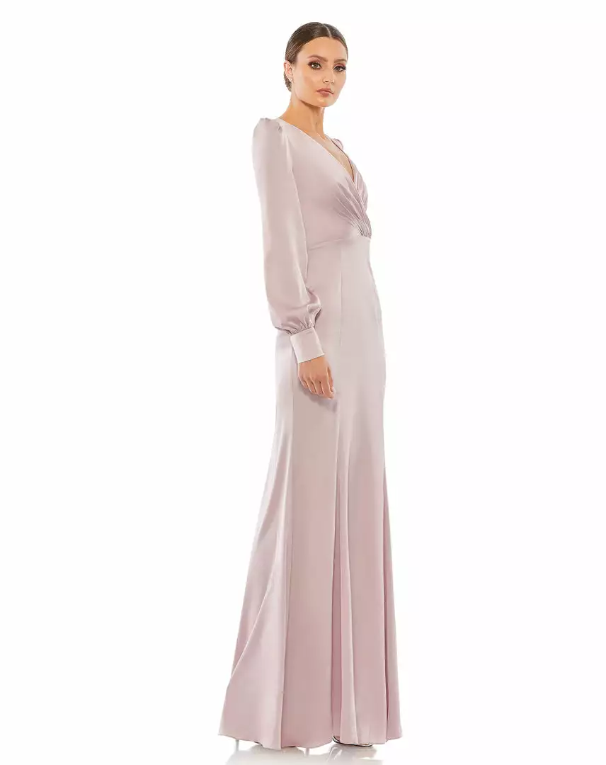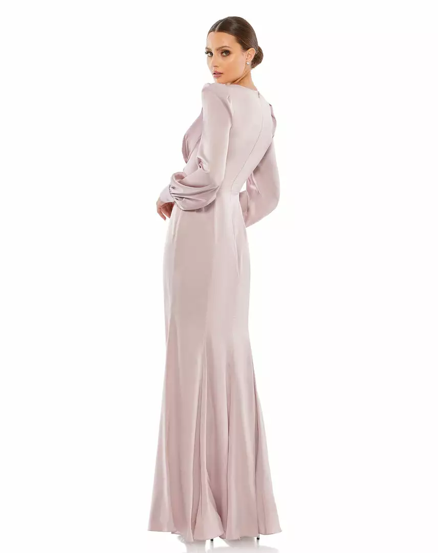 Ieena For Mac Duggal Satin Ruched Bishop Sleeve Gown Shop For