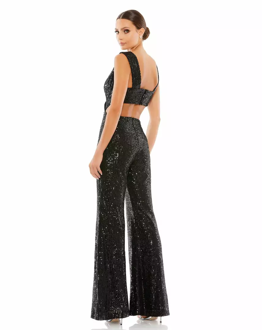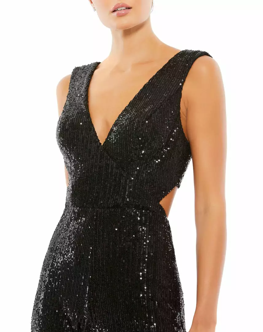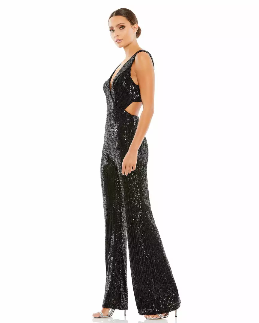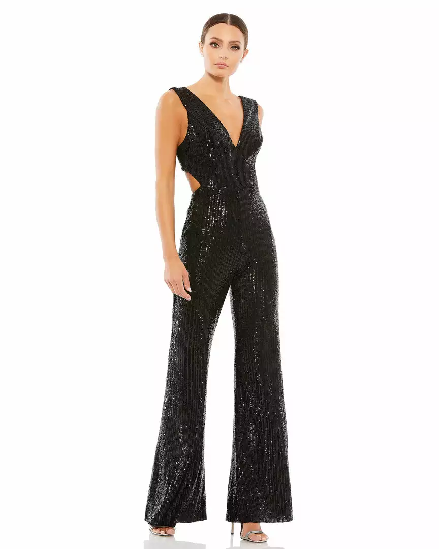 Ieena For Mac Duggal Sequined V-Neck Cut-Out Jumpsuit