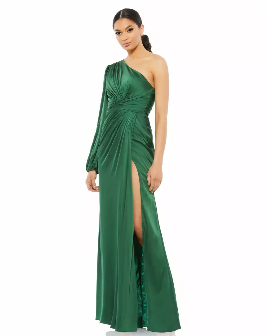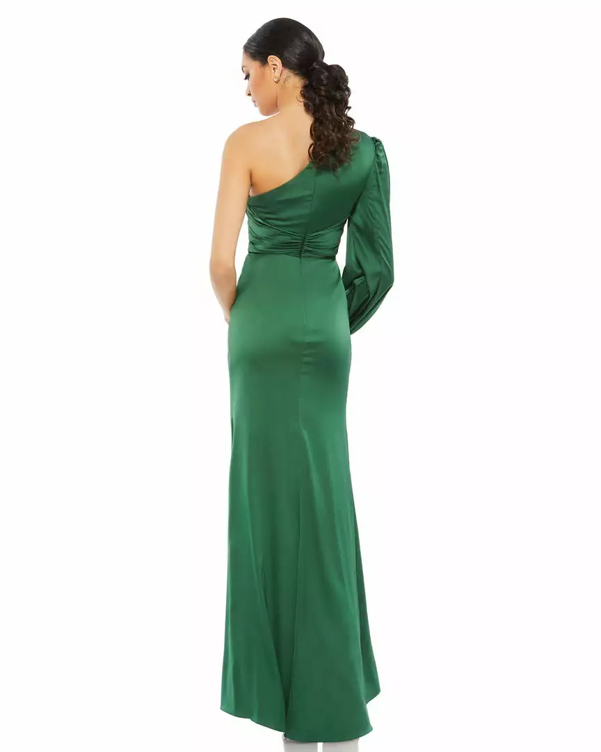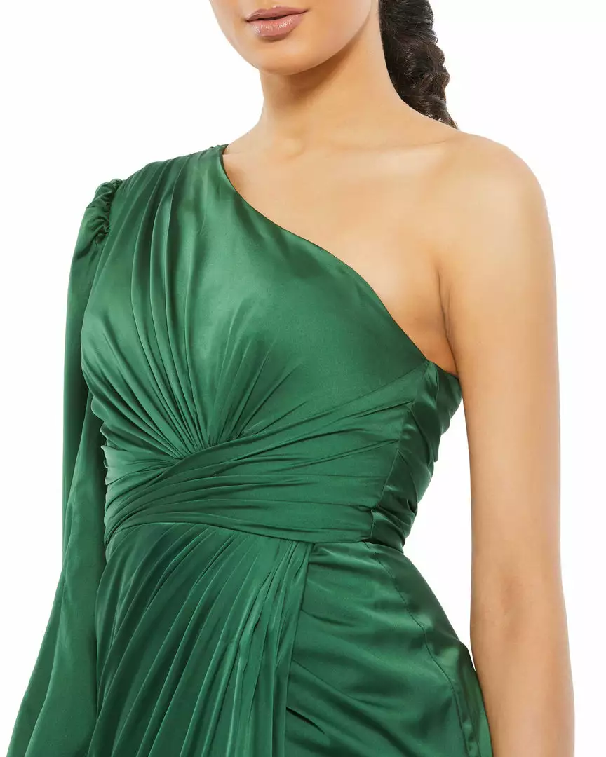 Ieena For Mac Duggal Shop For Draped Satin One Shoulder Ruched Evening Gown