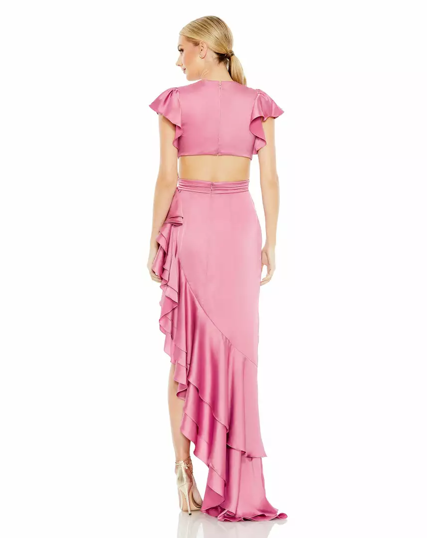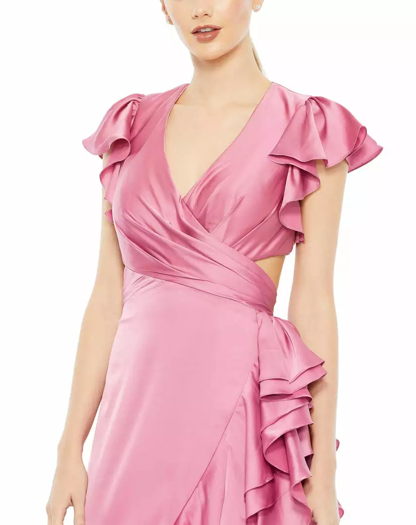 Ieena For Mac Duggal Shop For Flutter Sleeve Cut Out Asymmetrical Ruffled Gown