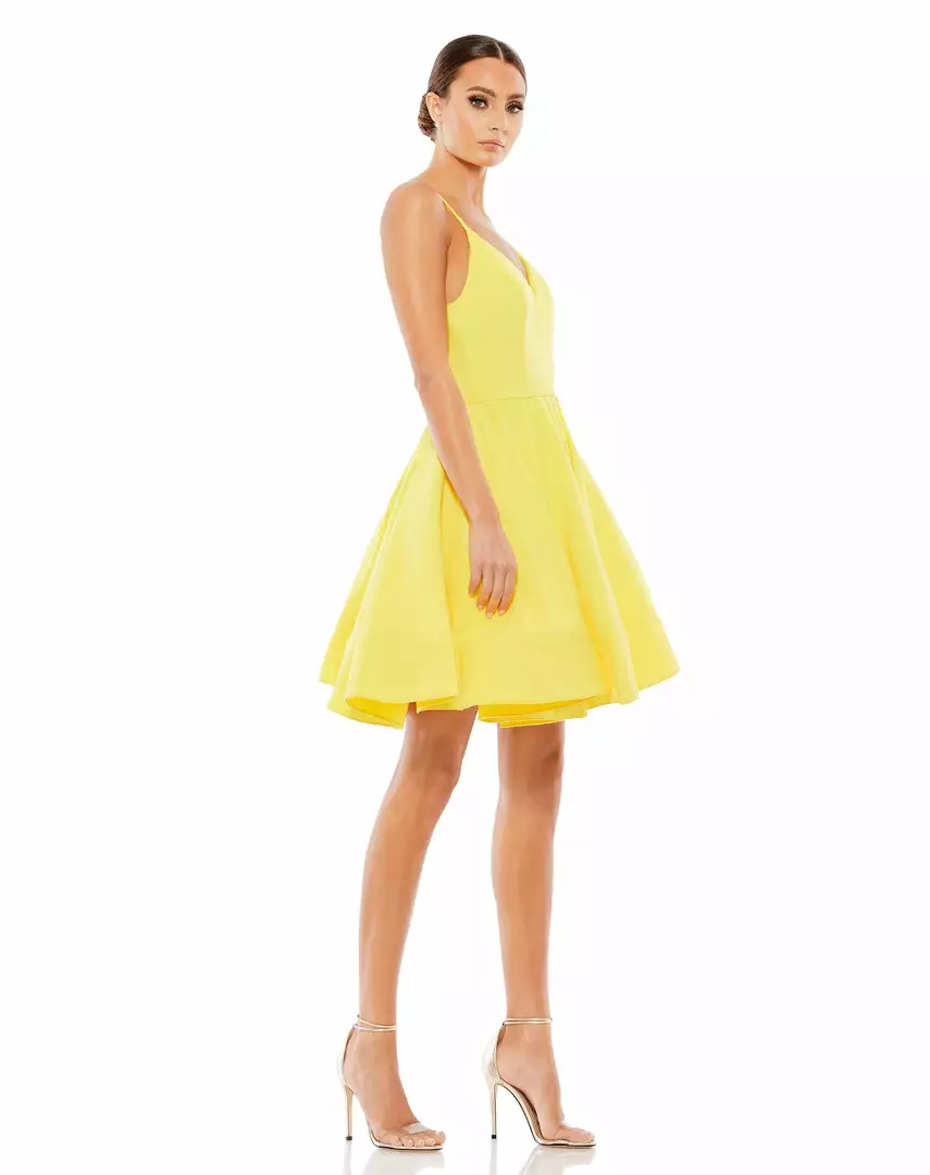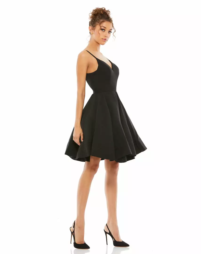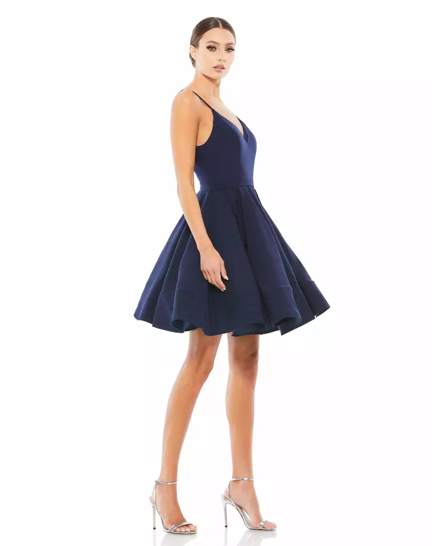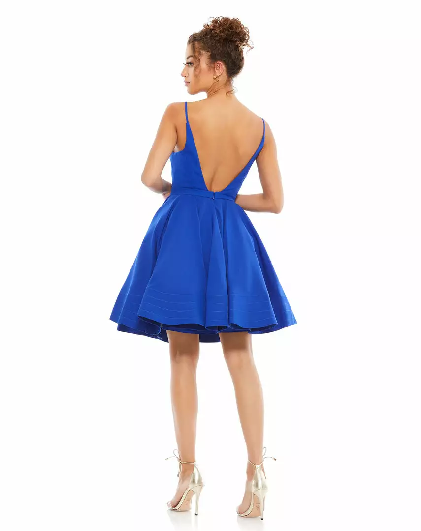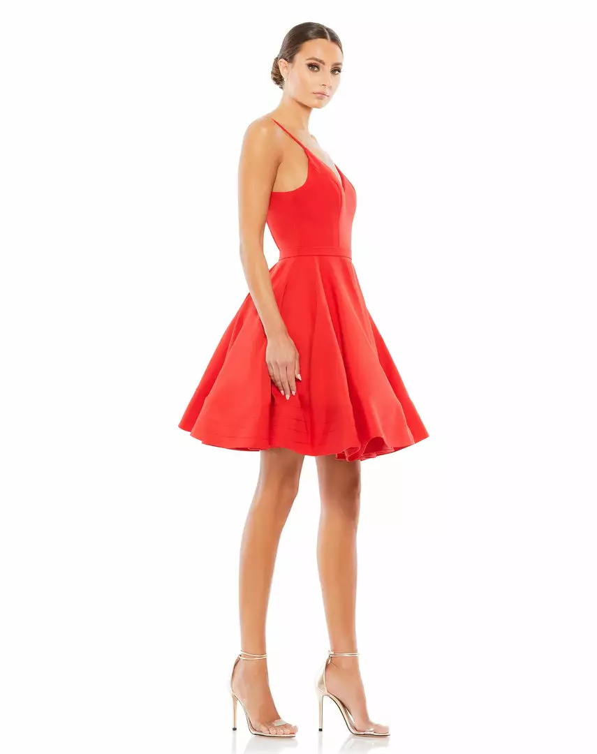 Perfectly tailored fit-and-flare dress finished with a deep v-neck and pockets.