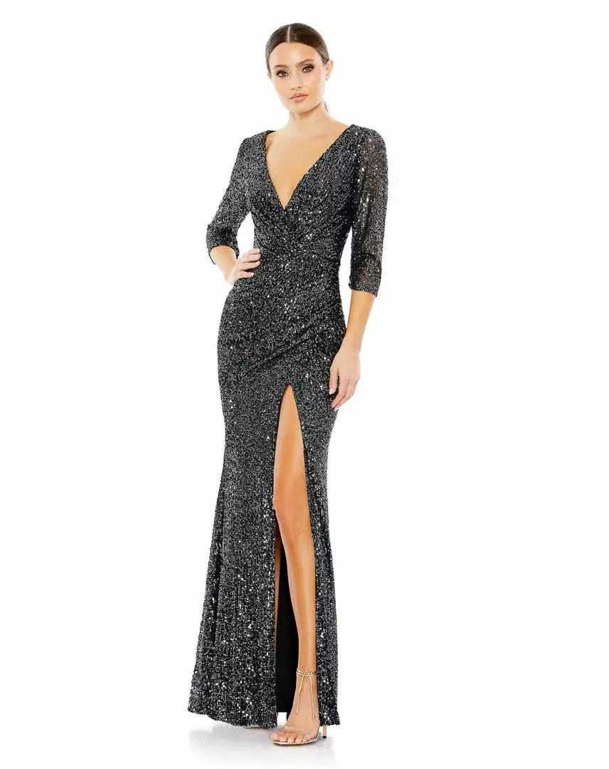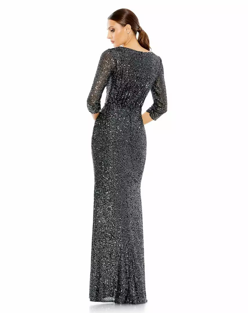 Ieena For Mac Duggal Shop For Sequined Draped 3/4 Sleeve Gown