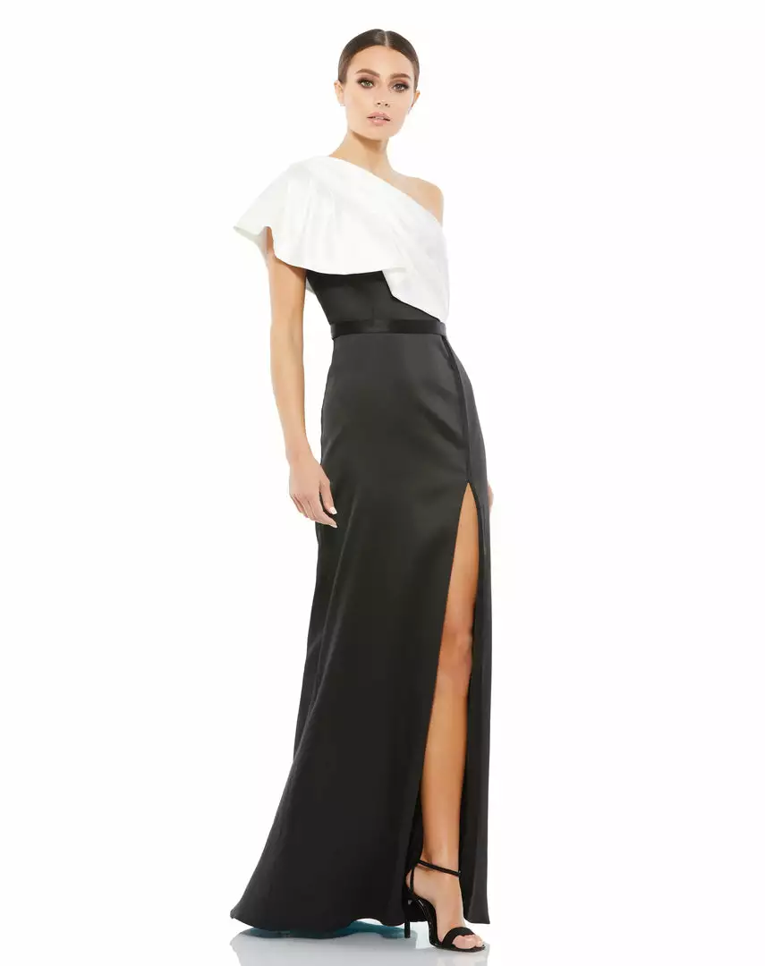 Ieena For Mac Duggal Shop For Two Toned Ruffled One Shoulder Gown