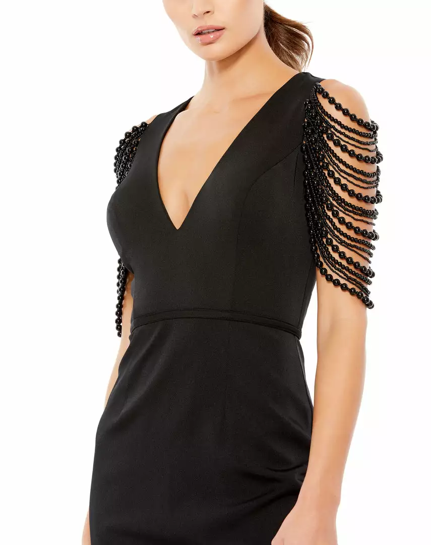 Mac Duggal Sequined Long Sleeve Illusion Plunge Neck Jumpsuit
