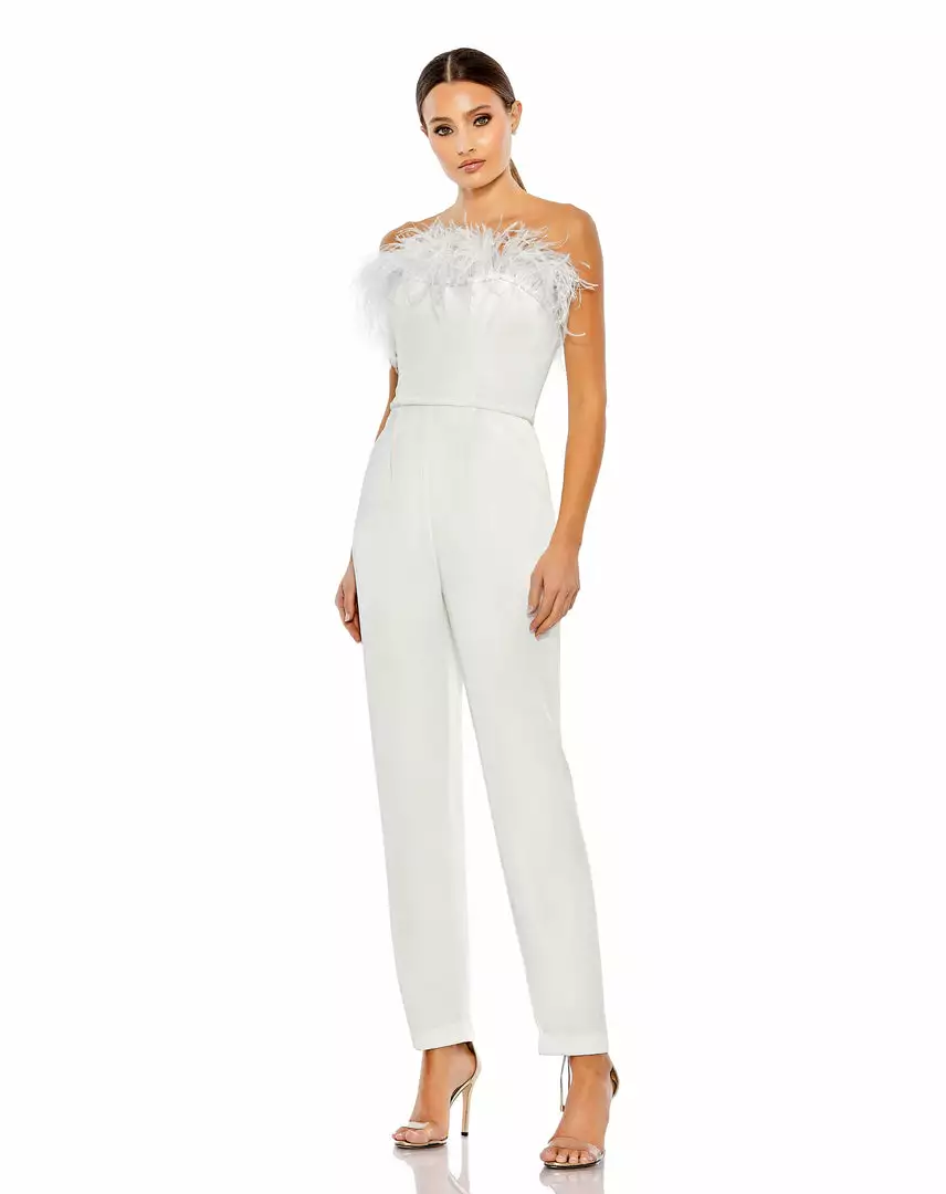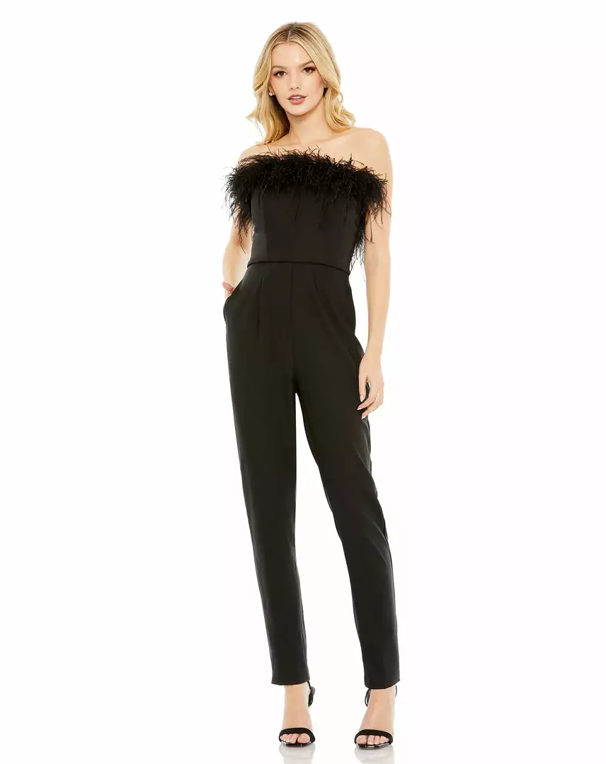 Ieena For Mac Duggal Strapless Jumpsuit With Ostrich Feathers Shop For