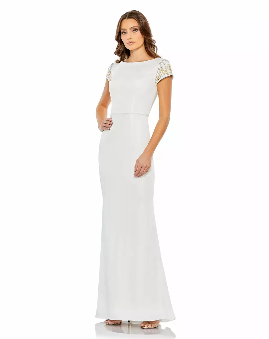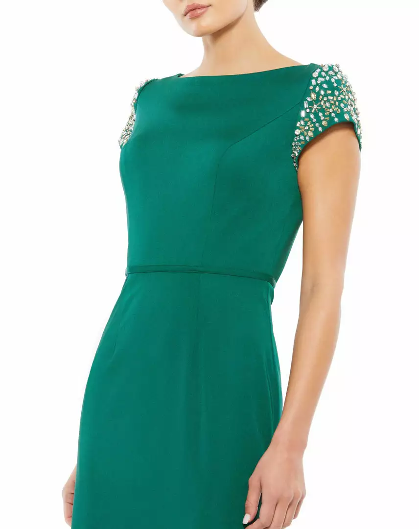 Mac Duggal Beaded Cap Sleeve Bateau Column Dress Shop For