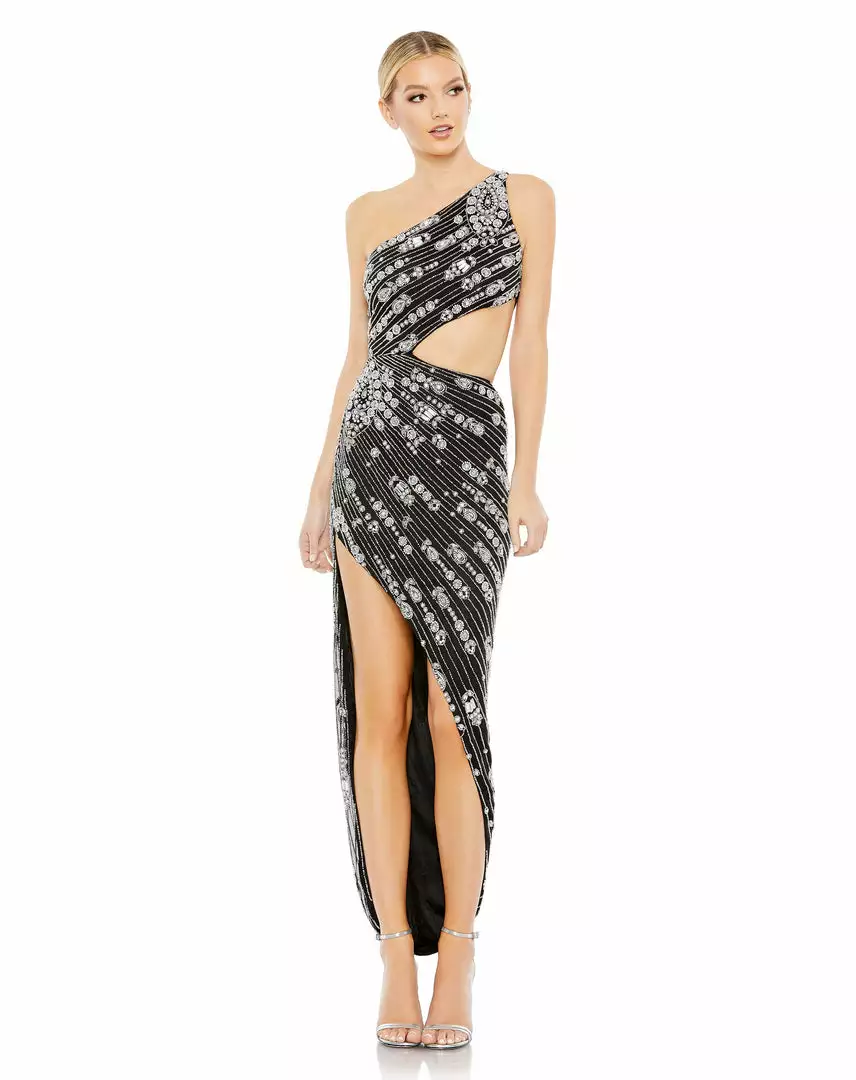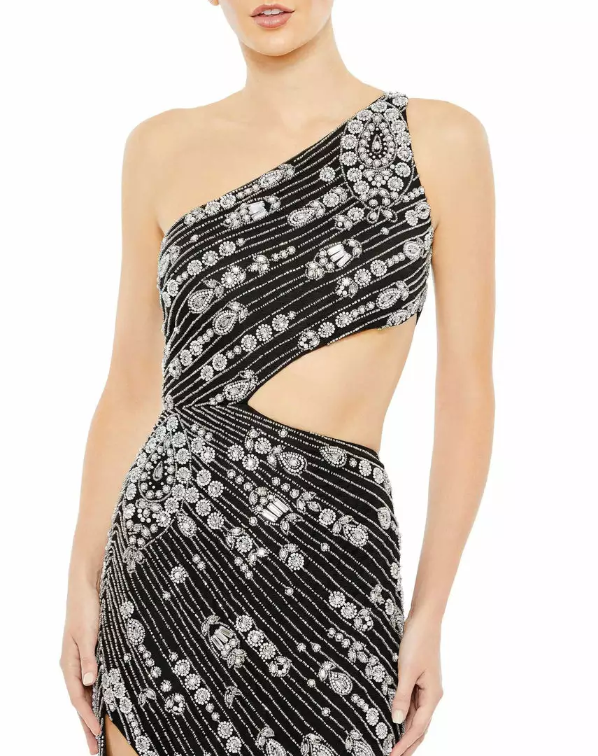 Mac Duggal Beaded One Shoulder Cut Out Gown