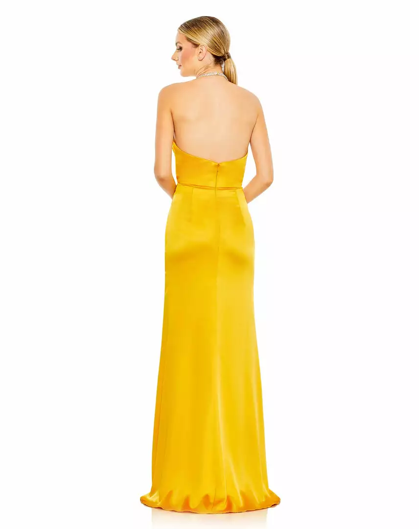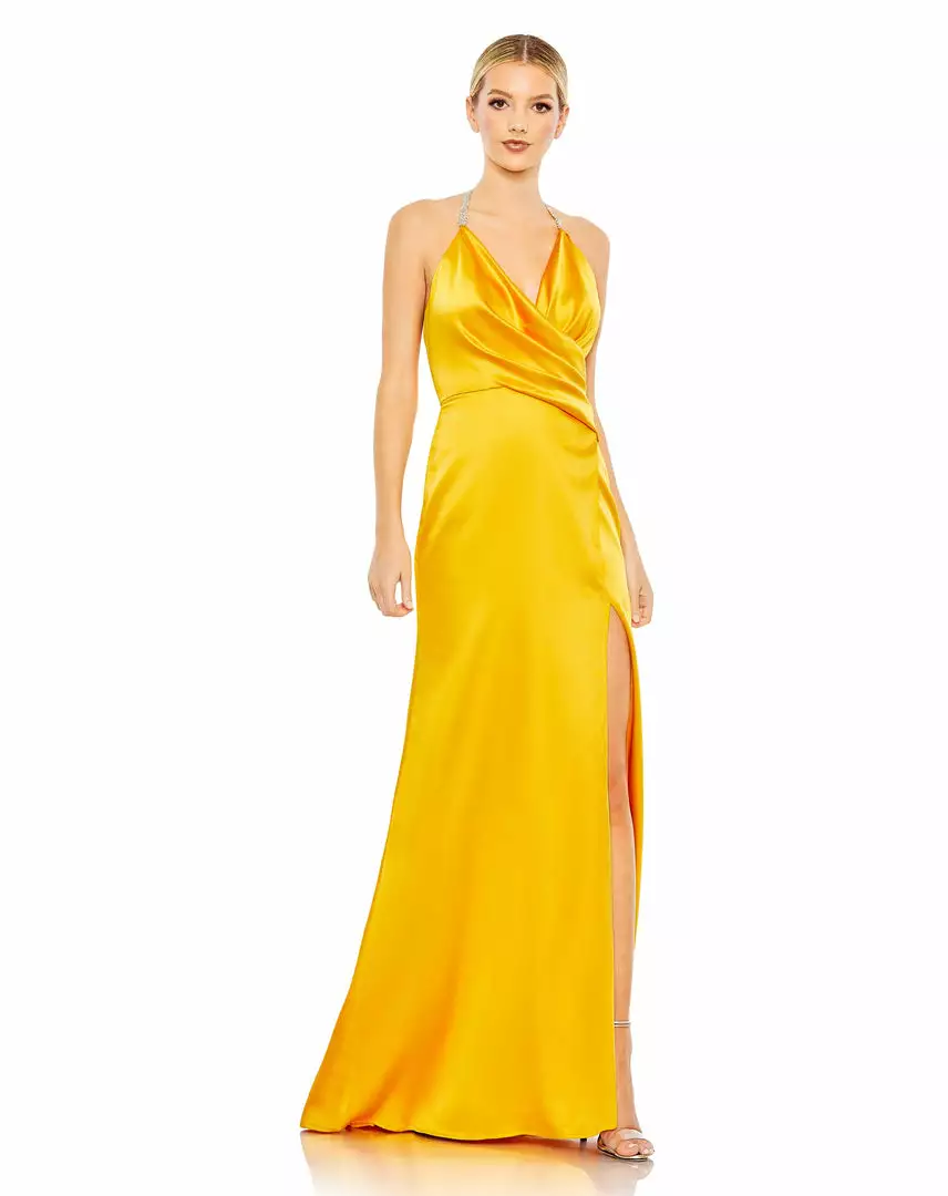 Mac Duggal Draped Beaded Halter Neck Trumpet Gown Shop For