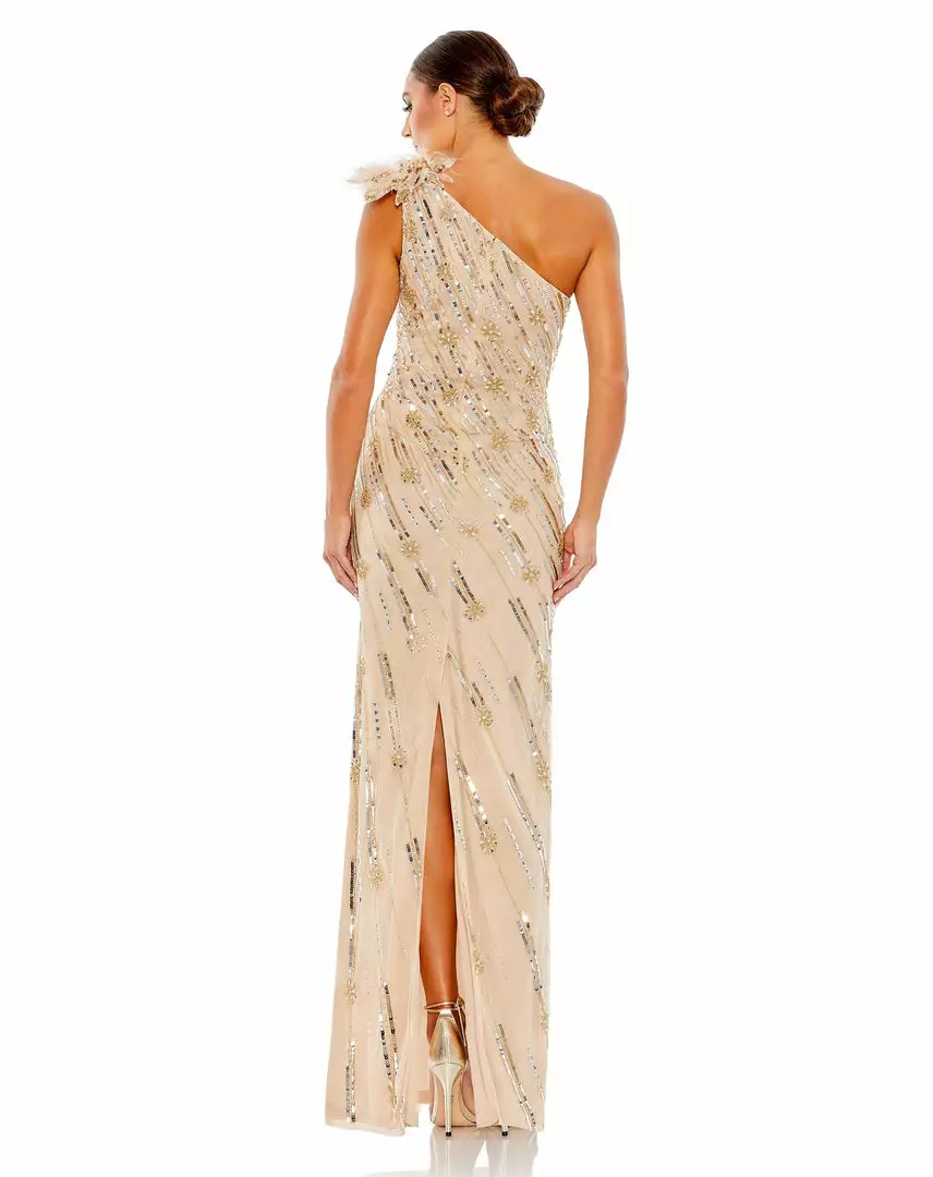 Mac Duggal Embellished Floral Detail One Shoulder Gown Shop For