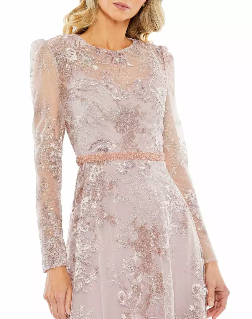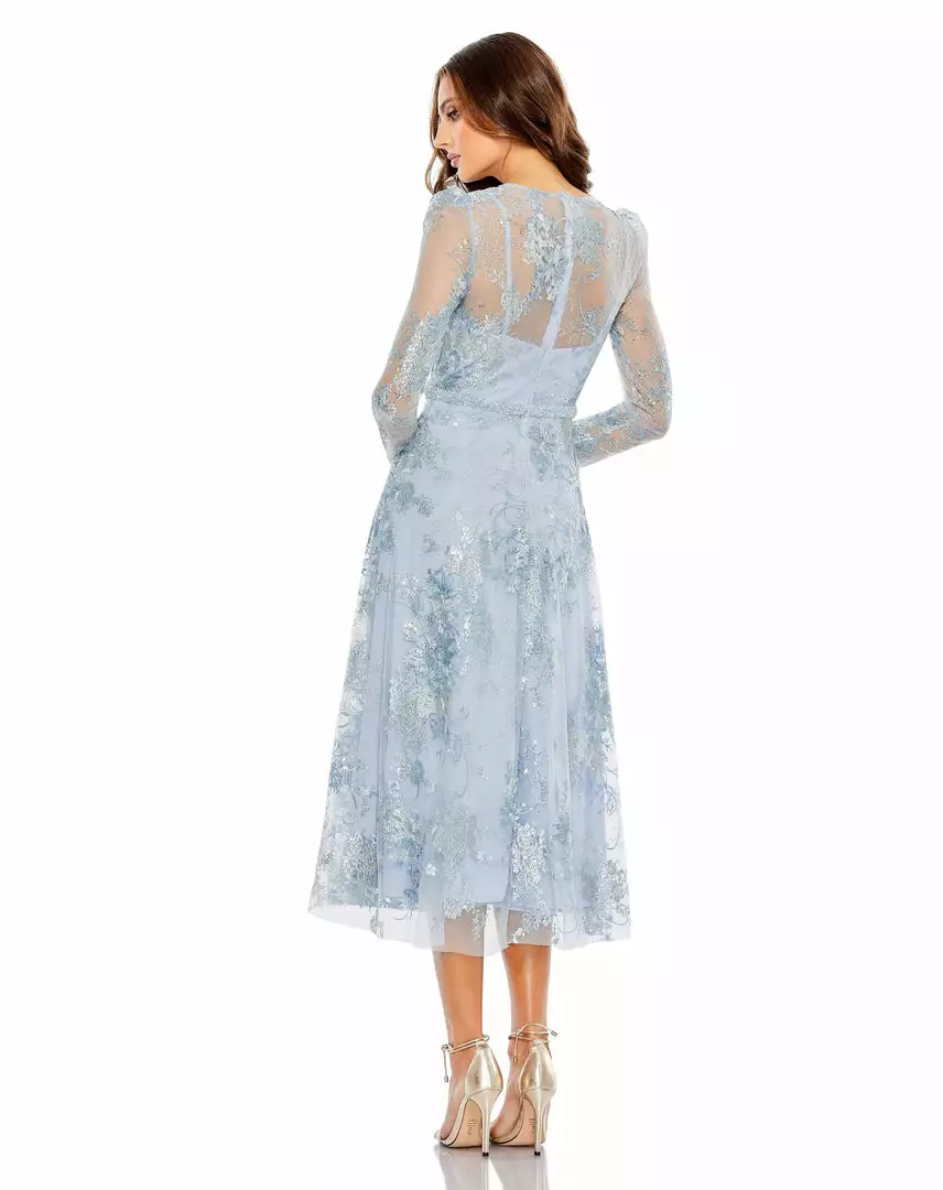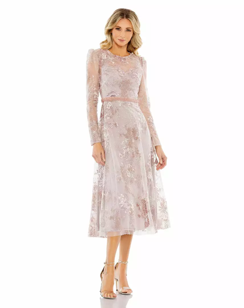 Mac Duggal Embellished Illusion Long Sleeve Midi Dress Shop For
