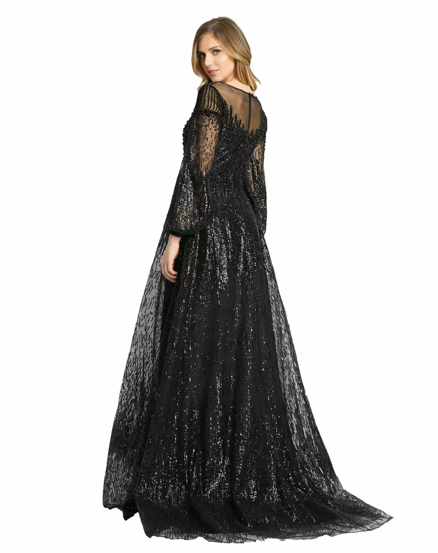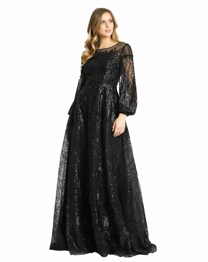 Mac Duggal Embellished Long Sleeve Illusion A Line Gown Shop For