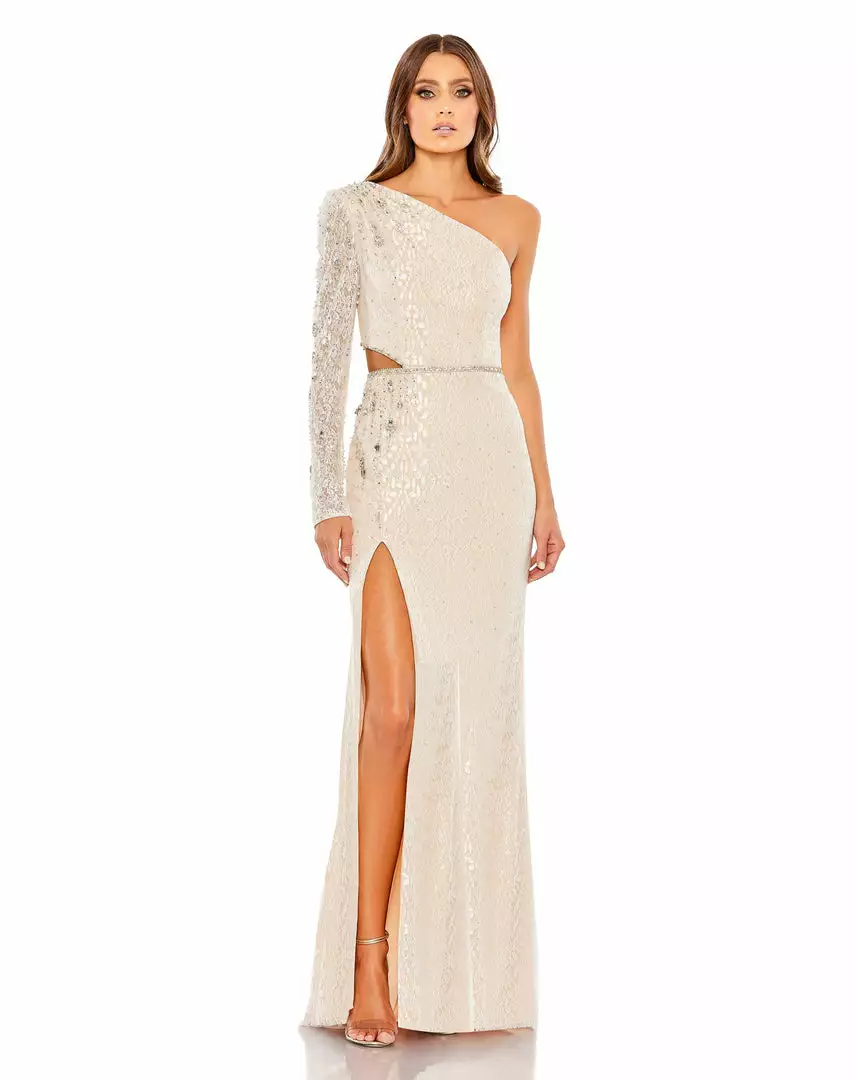 Mac Duggal Embellished One Sleeve Cut Out Gown Shop For