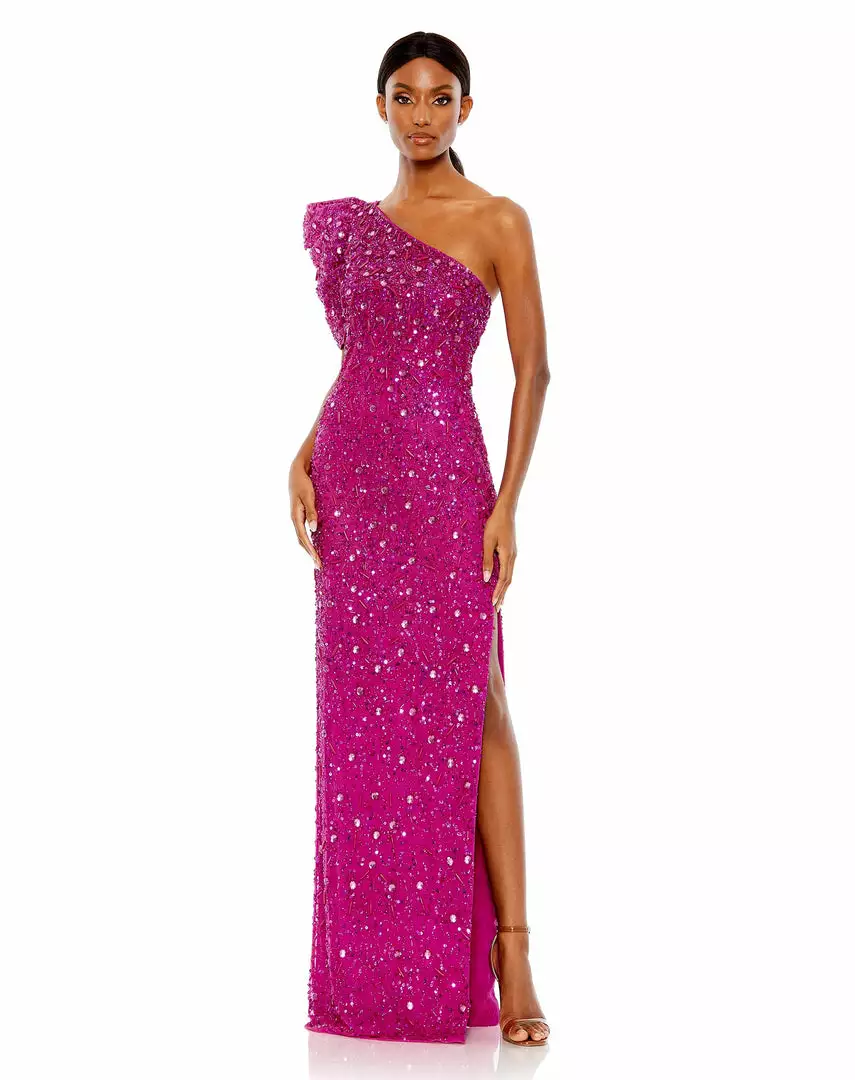 Mac Duggal Embellished Puff One Shoulder Column Gown