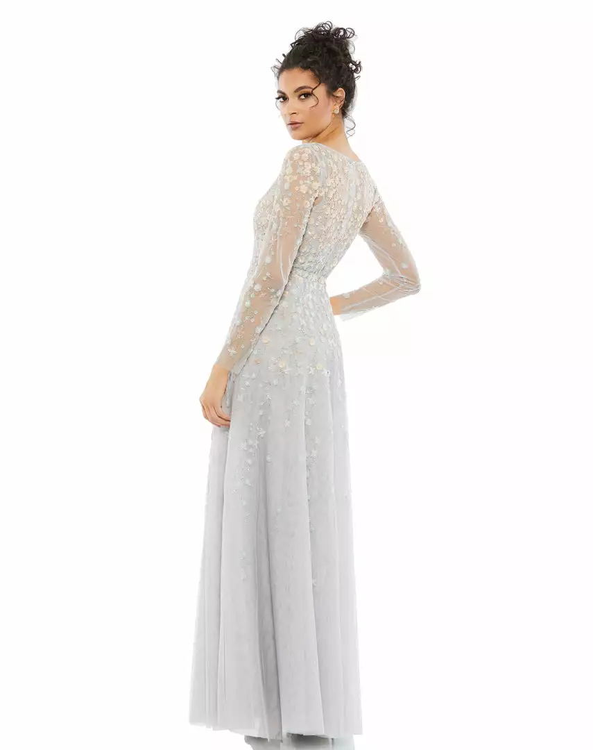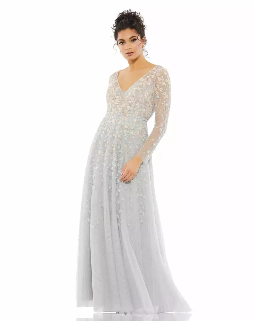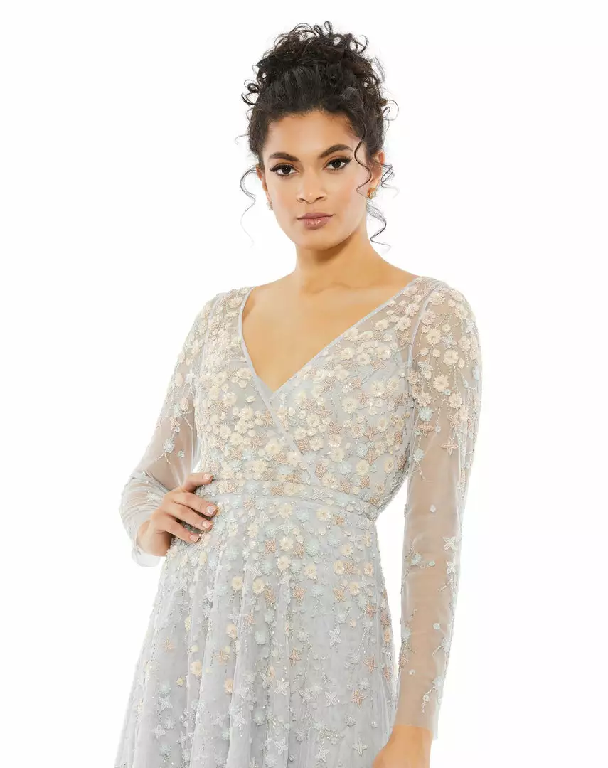Mac Duggal Floral Appliqué Long Sleeve Surplice Gown Shop For