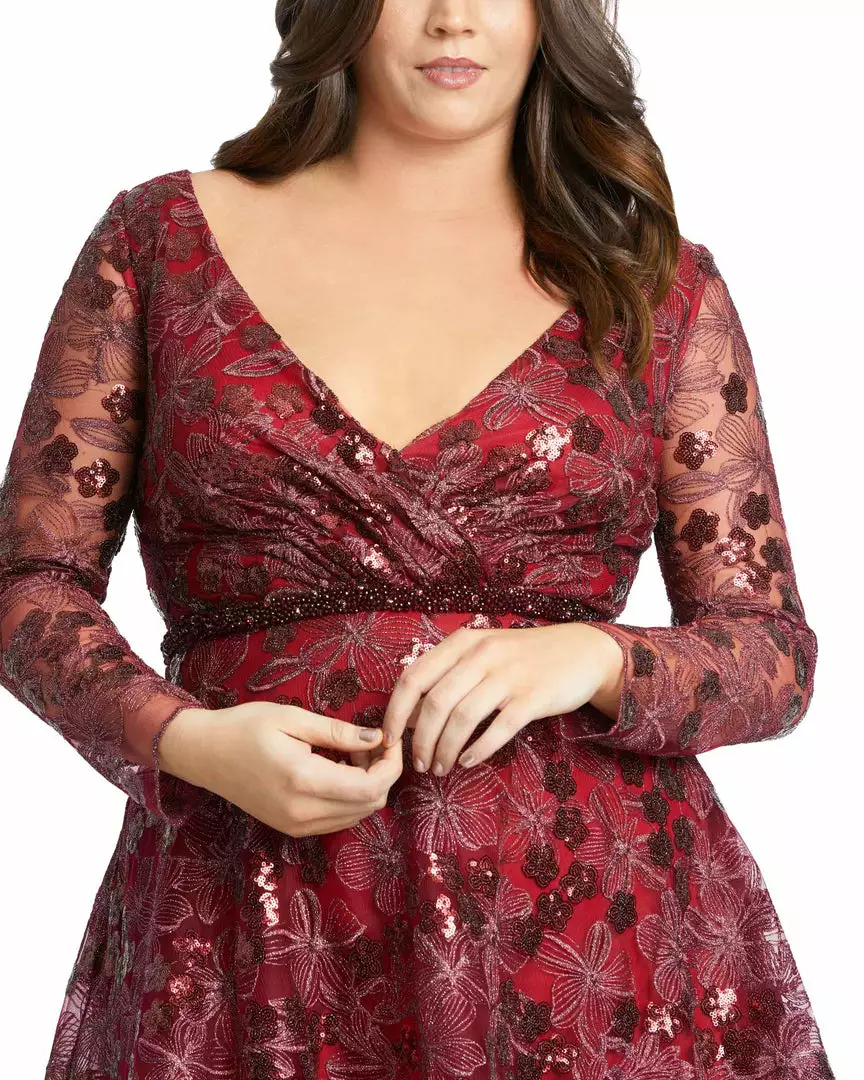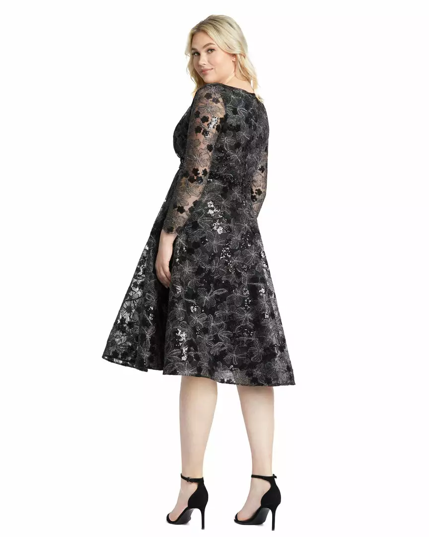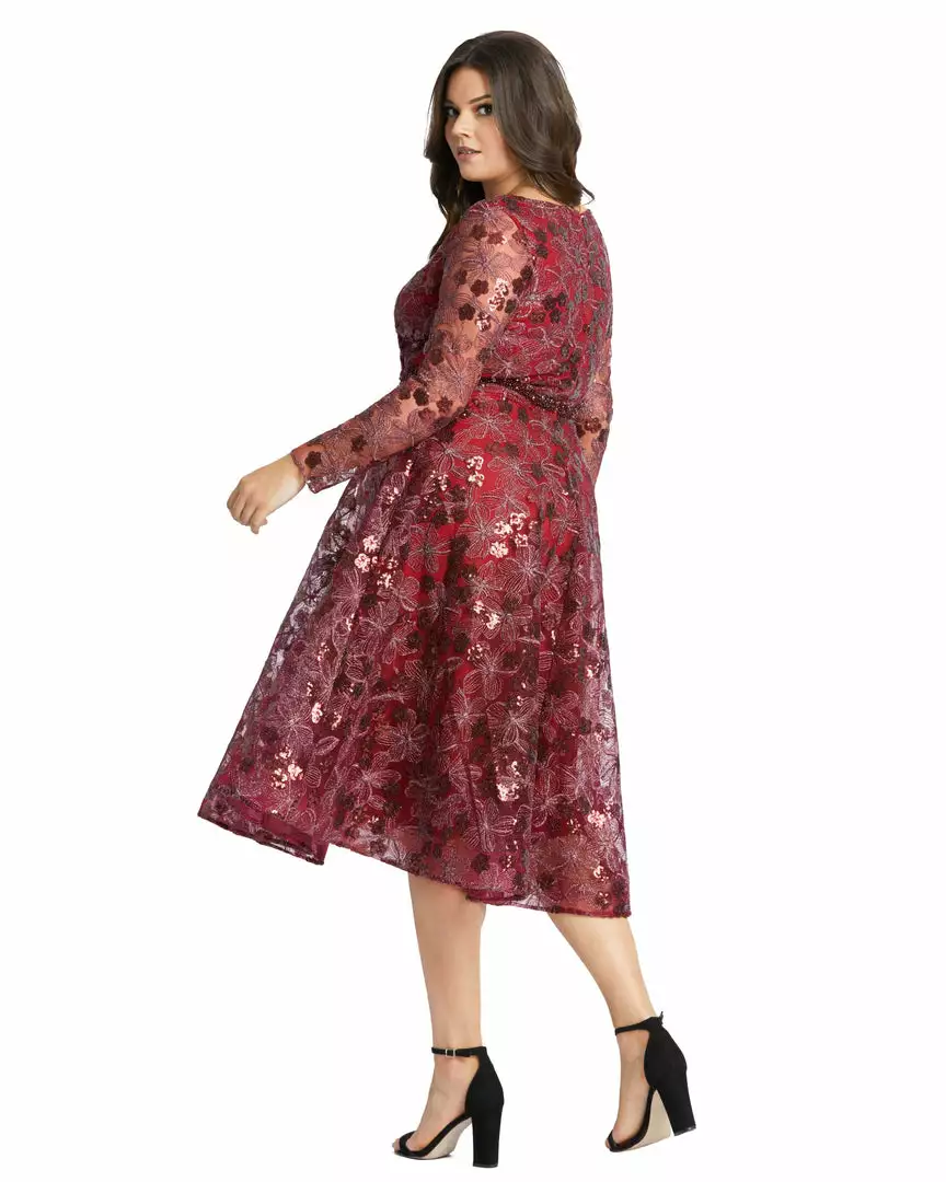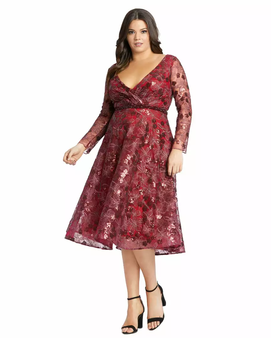 SKU: mac-duggal-6939722154163 Categories: Cocktail Dresses, Collections, Midi Dresses, Plus Size, Shop by Length, Shop For, The Wedding Shop, Wedding Guest Tags: Appliqué & Embroidery, Cocktail, Long Sleeve, Midi, Midi & Tea Length, Sequins, V-Neck, Wedding Guest