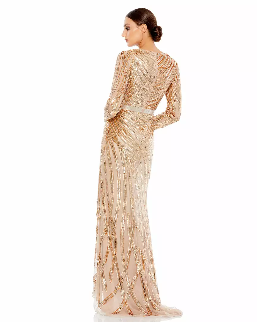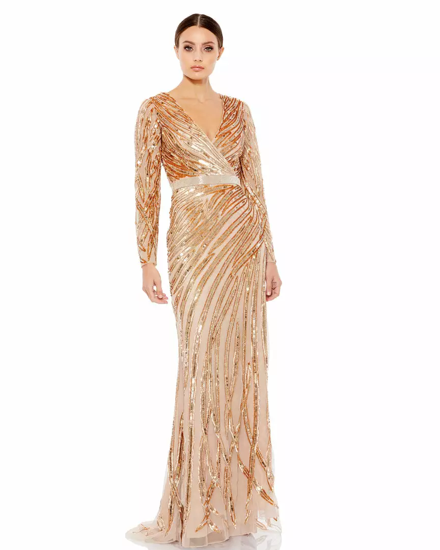 Mac Duggal Long Sleeve Sequin Streaked Gown Shop For