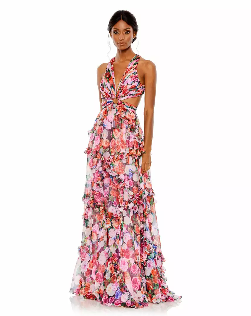 Mac Duggal Ruffled Cut Out Sleeveless Gown Shop For