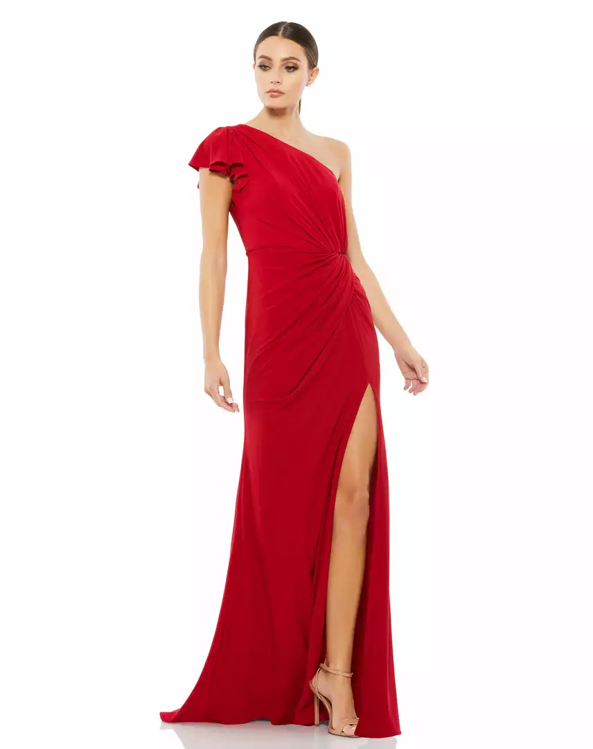 Mac Duggal Ruffled One Shoulder Draped Gown Shop For