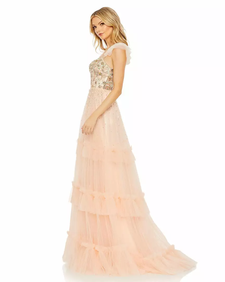 Mac Duggal Shop For Cap Sleeve Embellished Tulle Gown