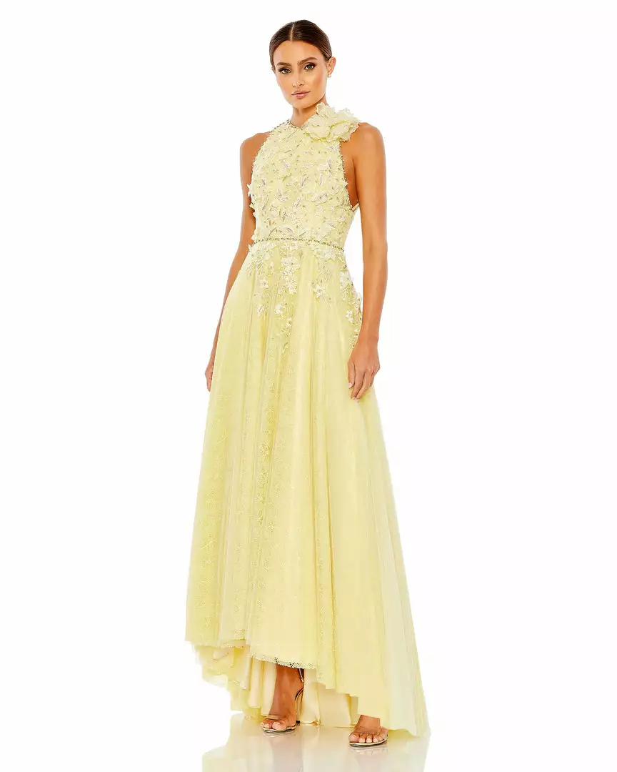 SKU: mac-duggal-7059982942387 Categories: Evening Gowns, Prom, Shop For Tags: Appliqué & Embroidery, Evening, Hi-Low, High Low, Prom, Rhinestone & Jewels, Sleeveless, Yellow