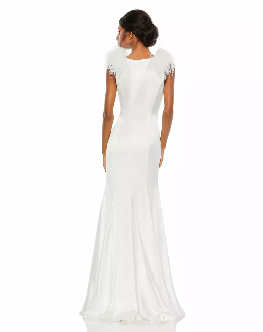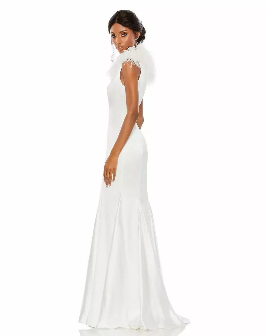 Mac Duggal Shop For Feather Shoulder V Neck Column Gown