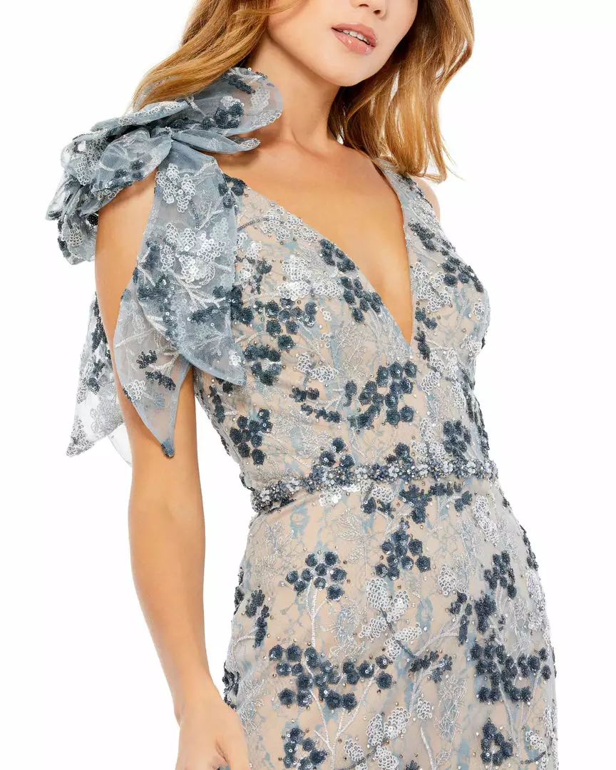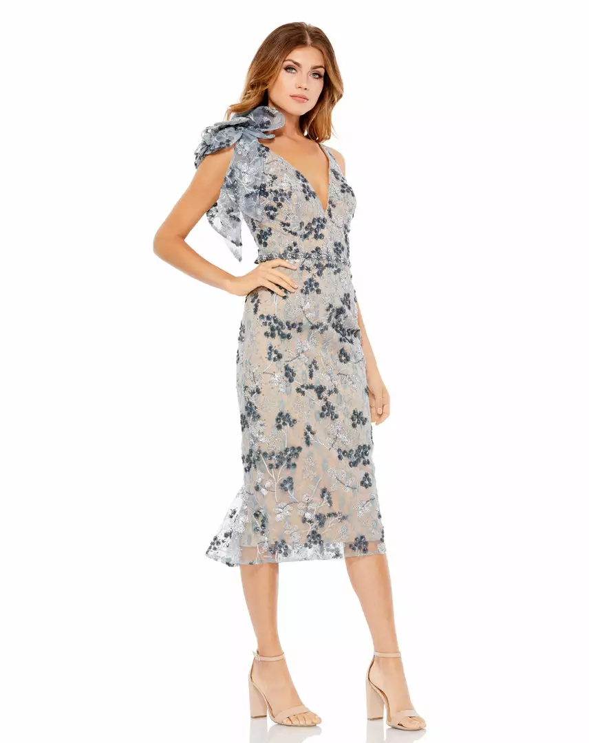 Mac Duggal Shop For Floral Embellished Beaded V-Neck Midi Dress