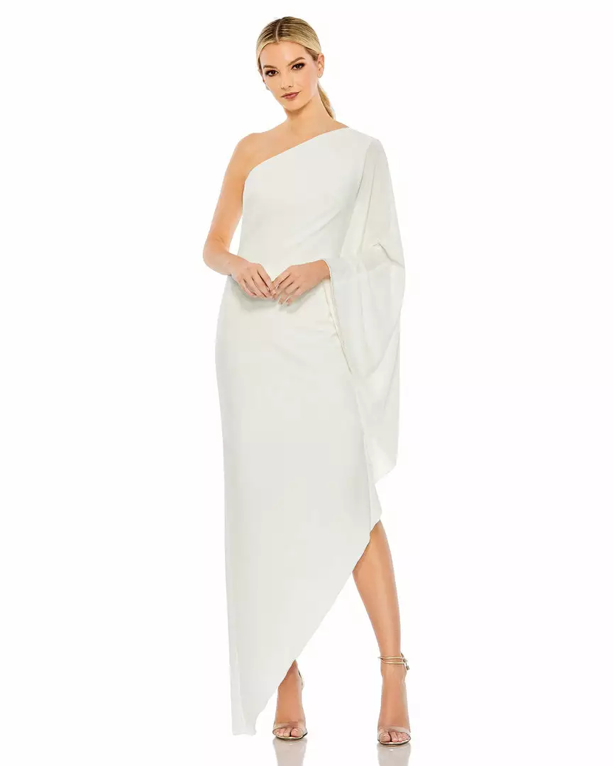 Mac Duggal Shop For One Shoulder Asymmetrical Cape Sleeve Dress