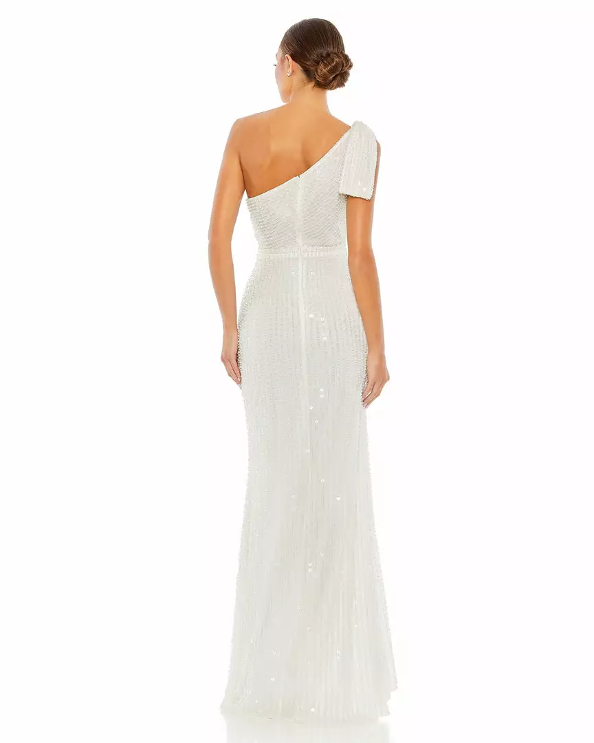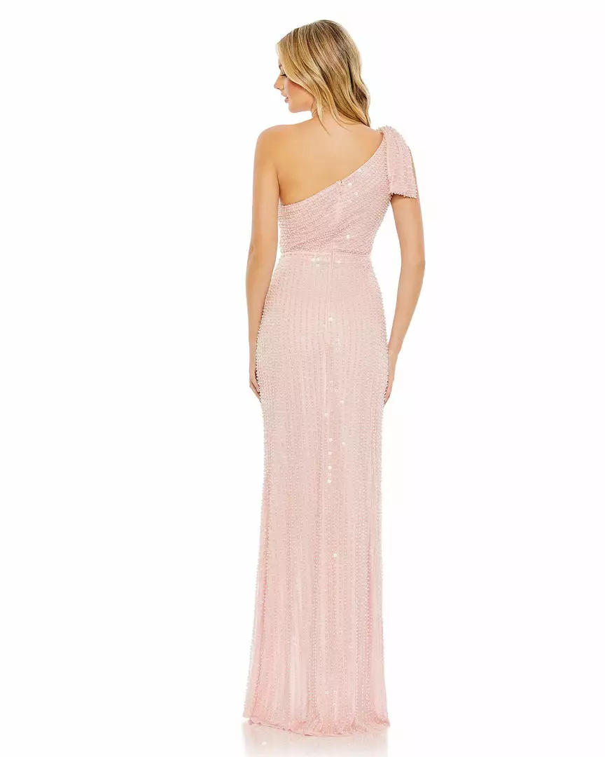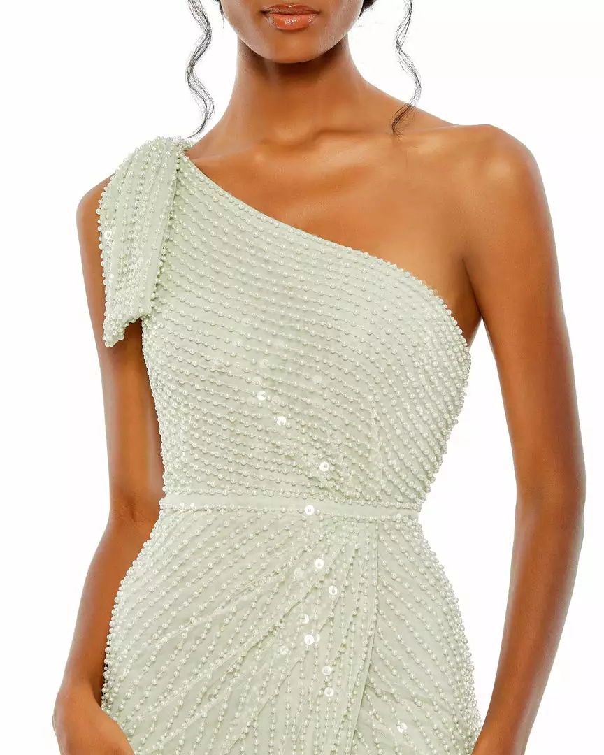Mac Duggal Shop For Pearl Embellished Soft Tie One Shoulder Gown