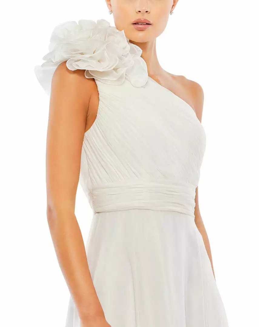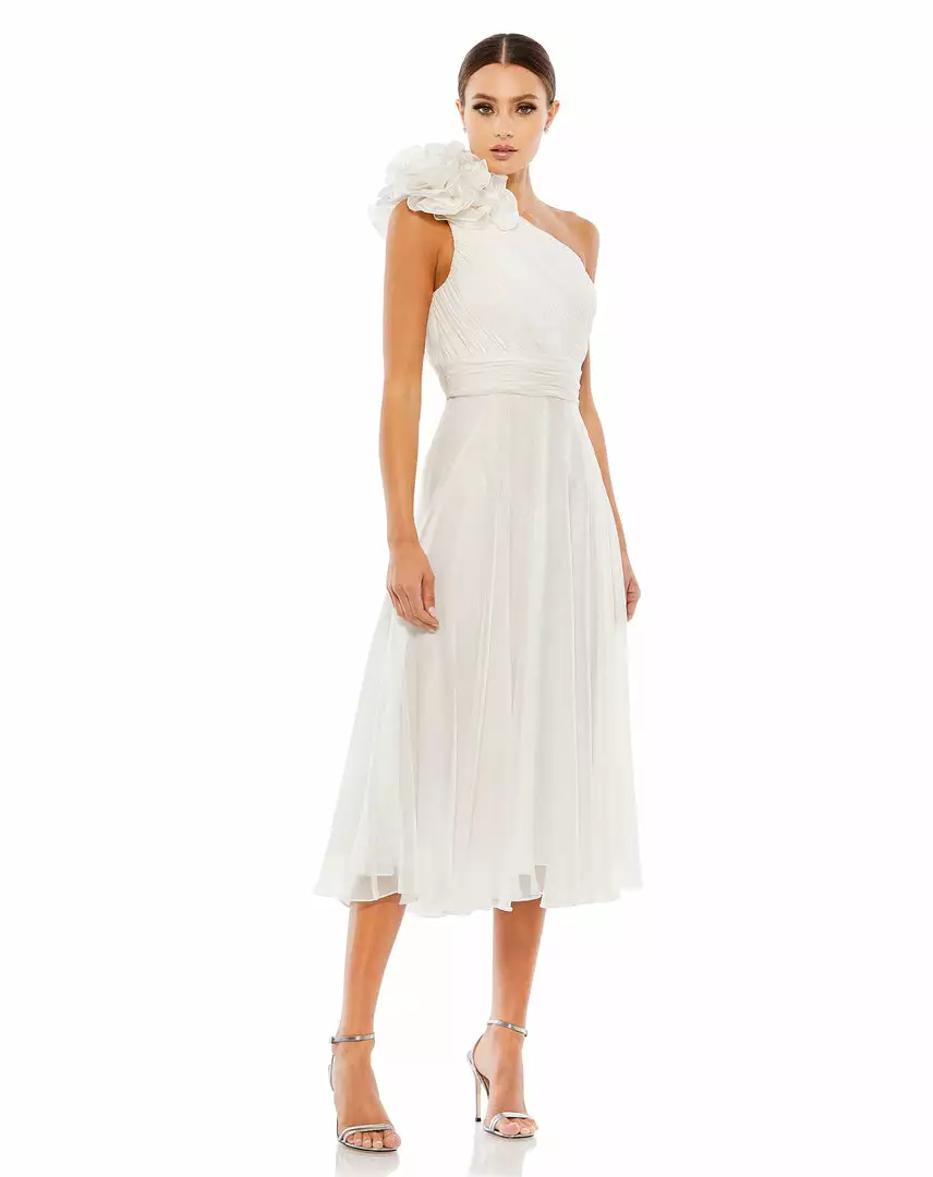 Mac Duggal Shop For Rosette One Shoulder Tea Length Dress