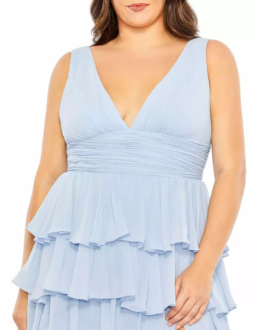 Mac Duggal Shop For Ruffle Tiered Sleeveless V Neck Gown (Plus)