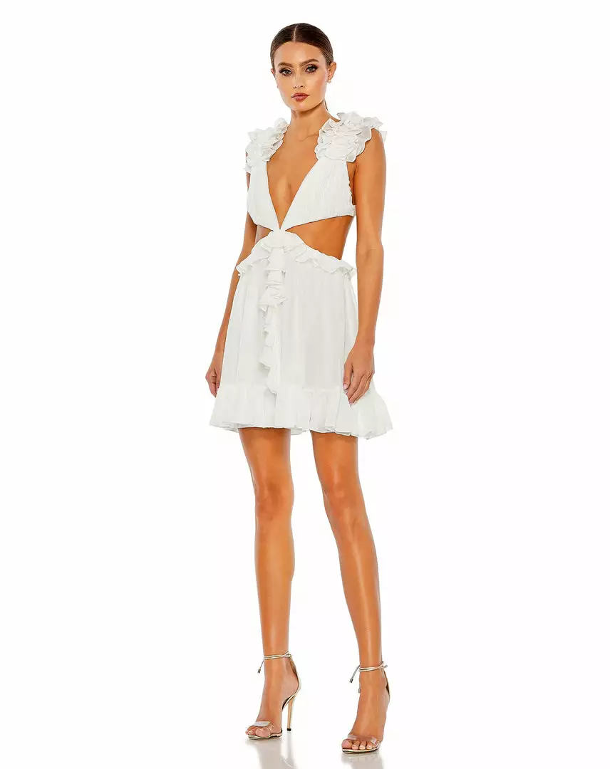 Mac Duggal Shop For Ruffled Cut-Out V Neck Mini Dress