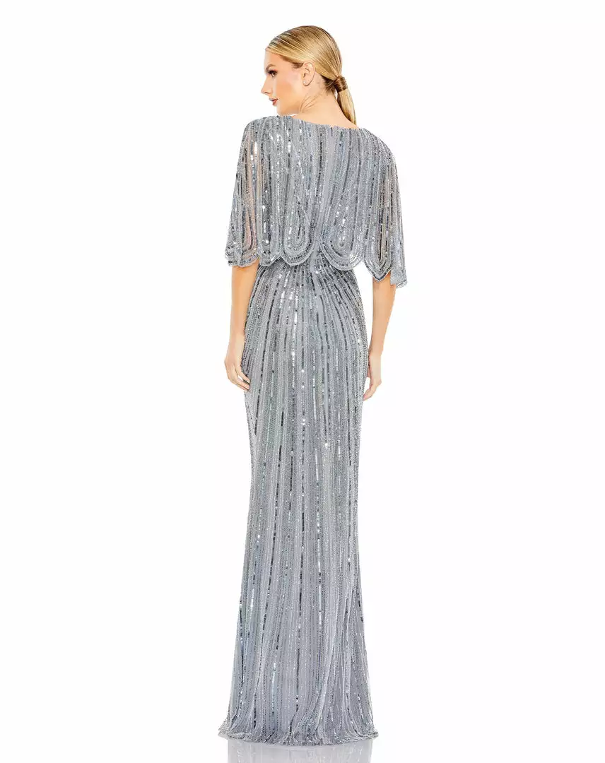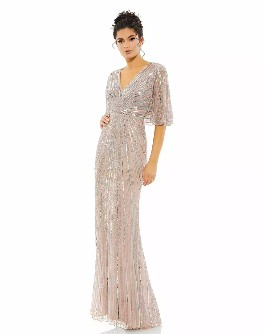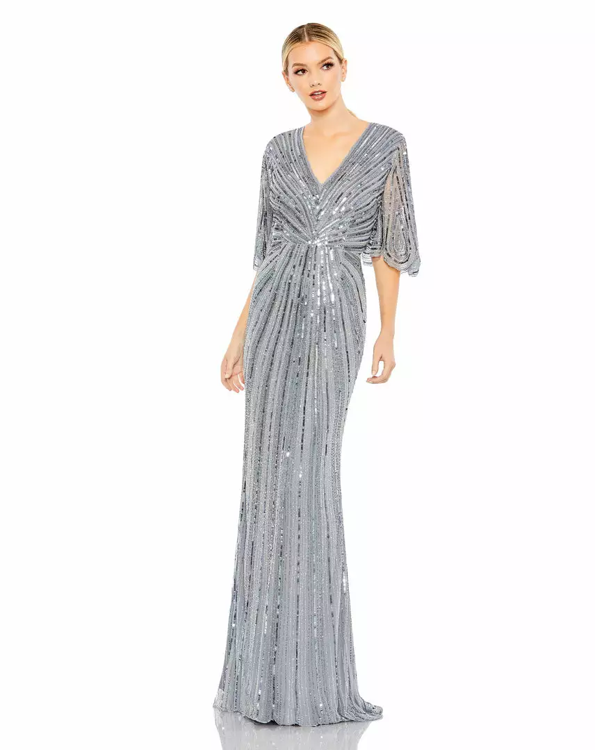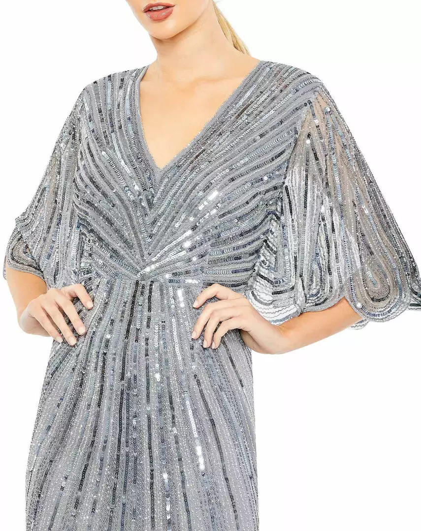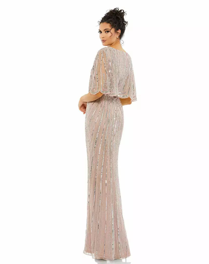 Mac Duggal Shop For Sequined V Neck Cape Sleeve Column Gown
